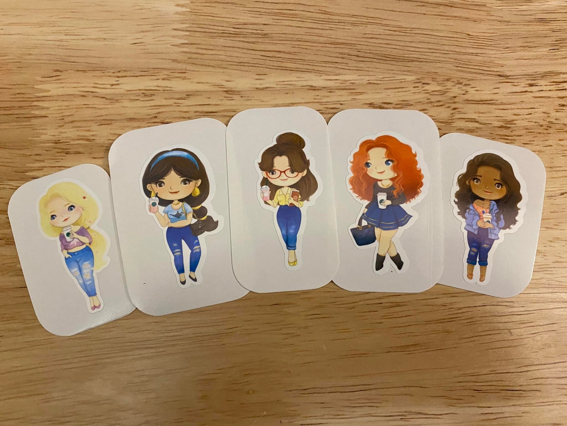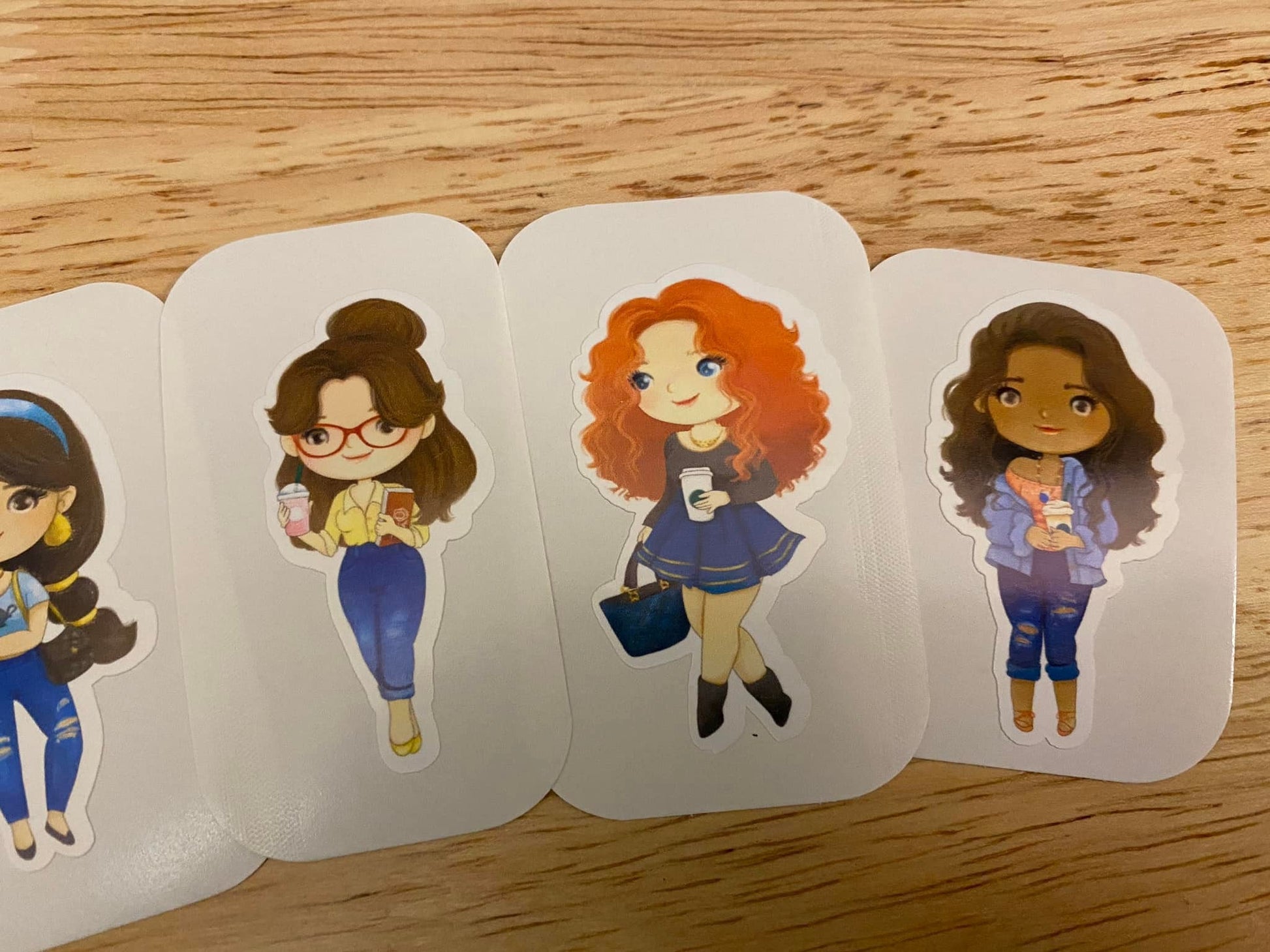 Cute Coffee Sticker Pack. Comes with 4 Stickers they are printed on very strong White Vinyl type of Paper and then cut around each sticker leaving a small white out-lining. They can be added to almost any hard non-textured surface. Great to decorate your laptop, planner, etc.