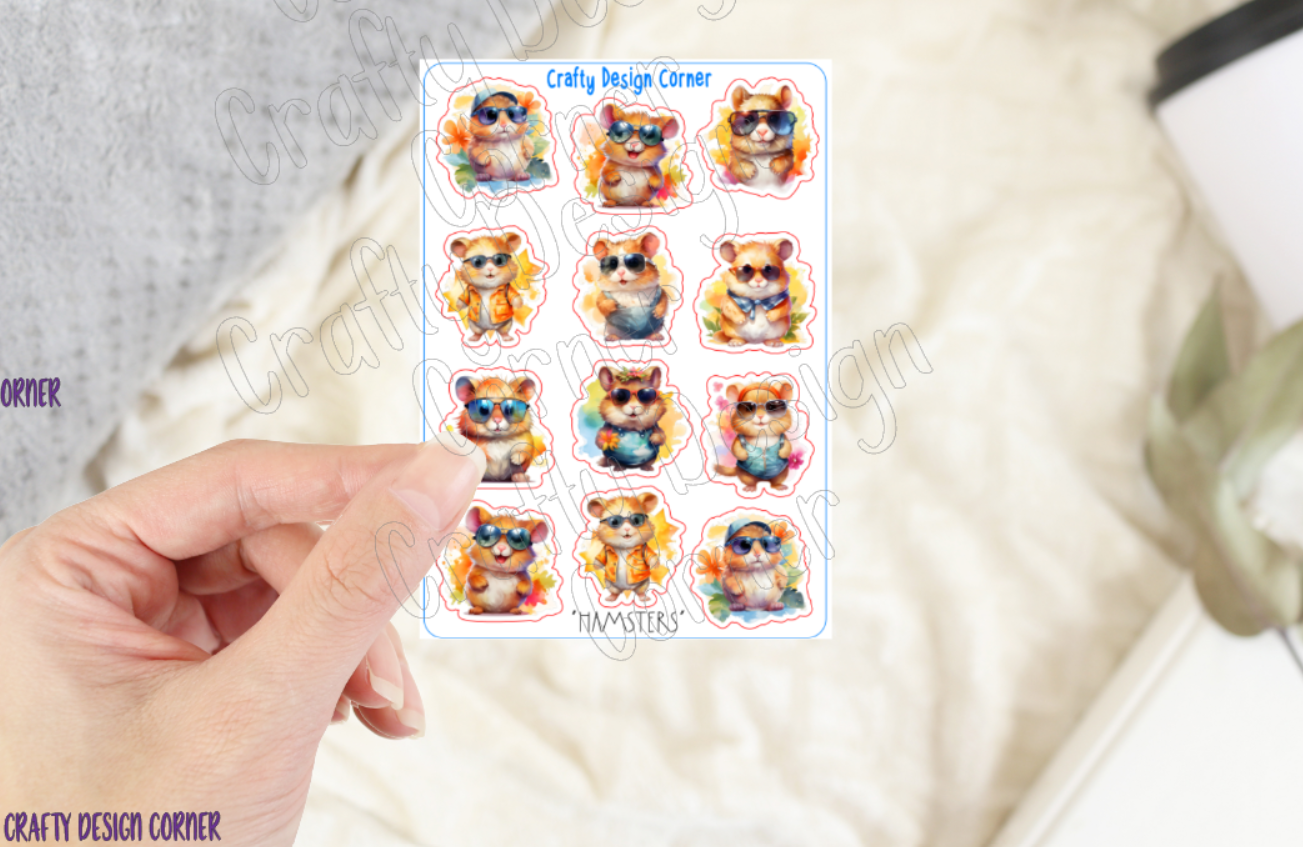 Cute Hamsters Stickers, Hamsters with Clothes Sticker, Hamster sticker sheet
