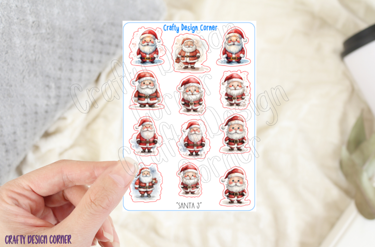 Cute Santa Stickers, Christmas Sticker Sheet, Christmas Stickers, Santa sheet