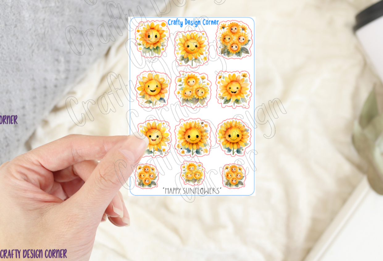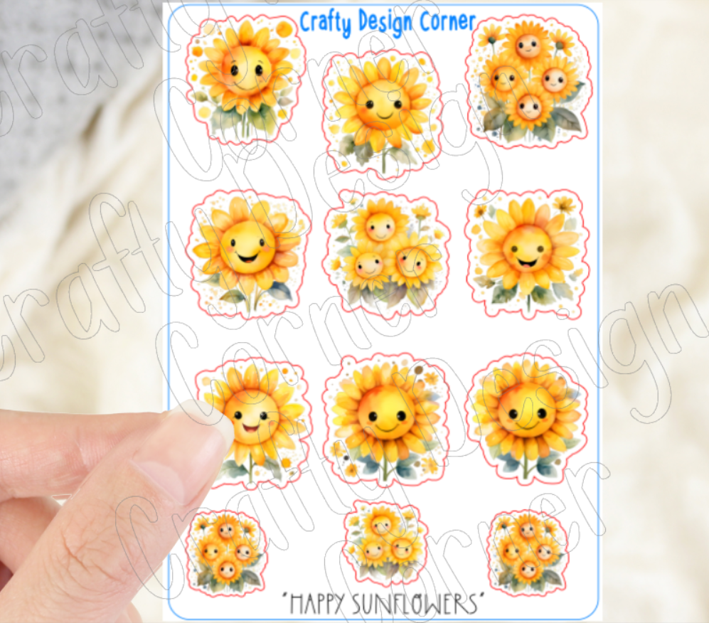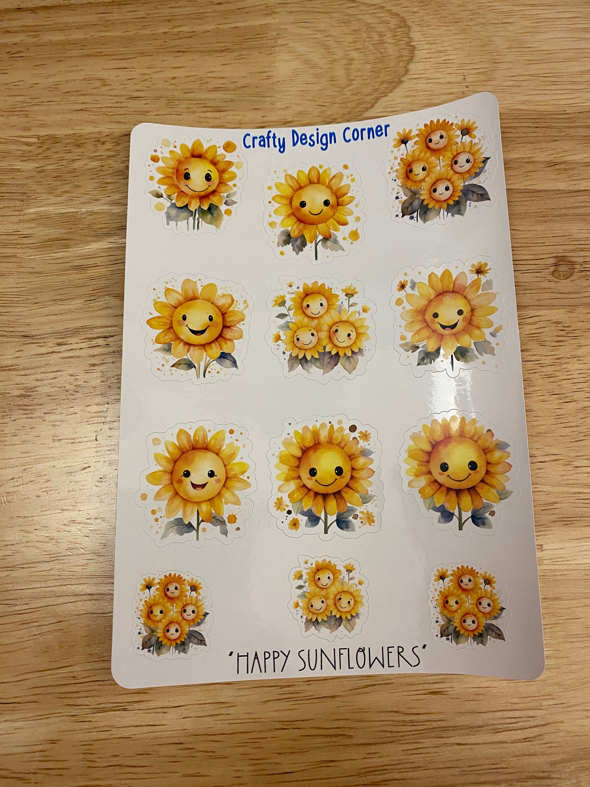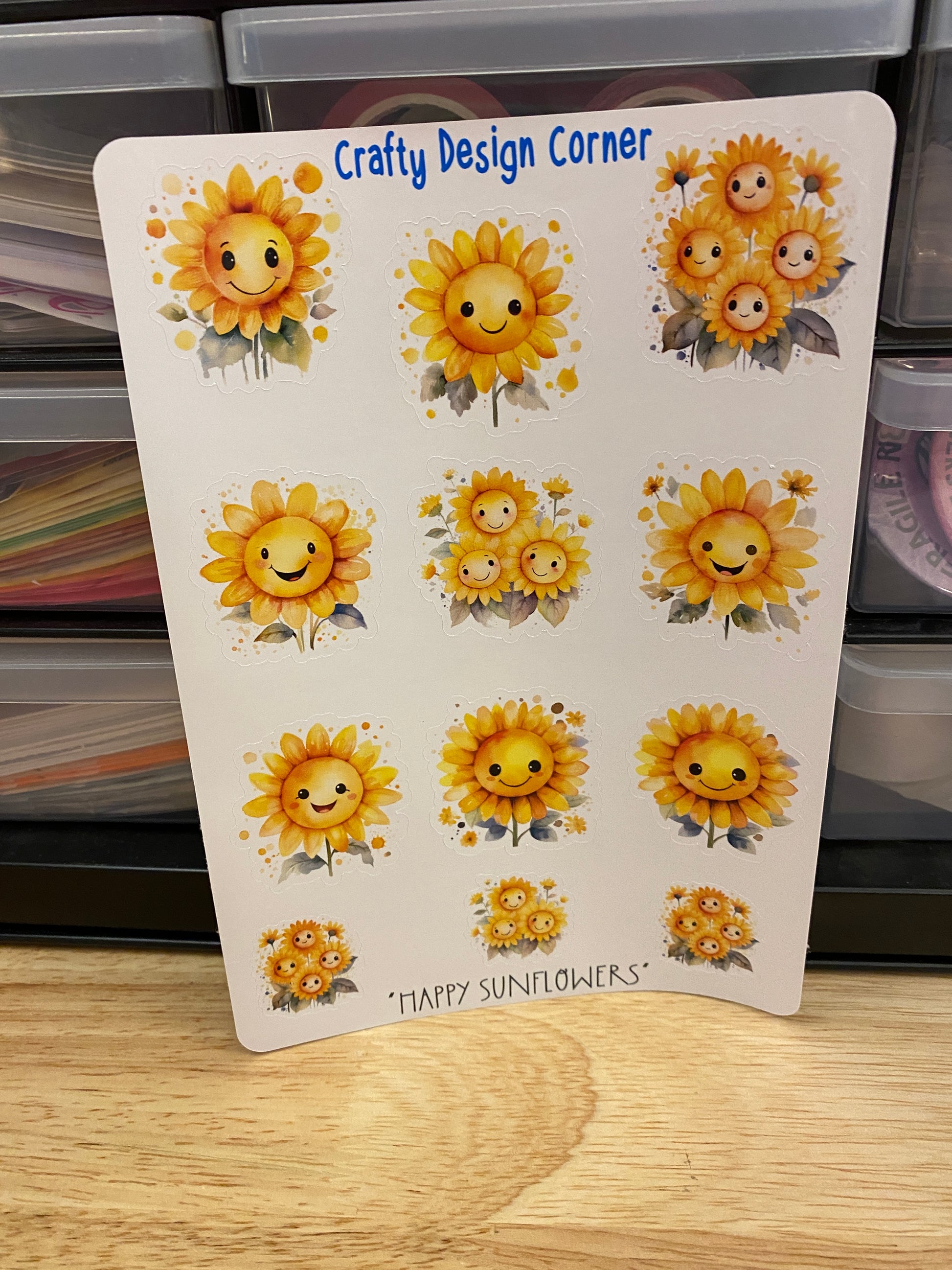 Cute Yellow Sunflowers Stickers, Sunflower with faces Sticker, Sunflower sticker sheet