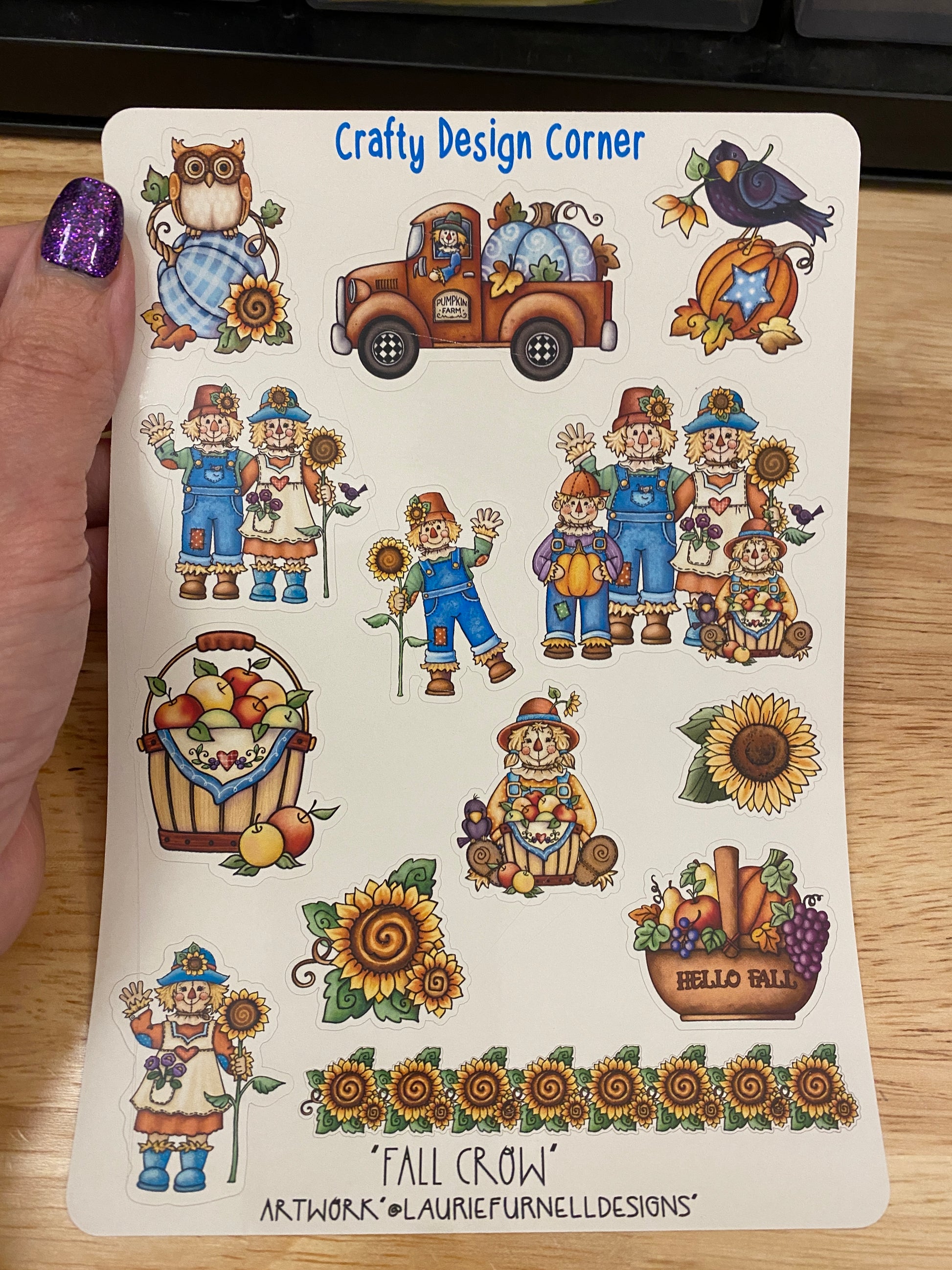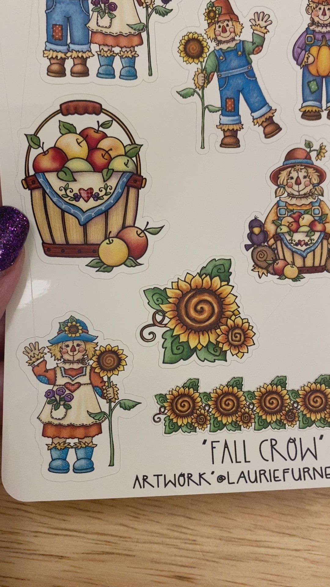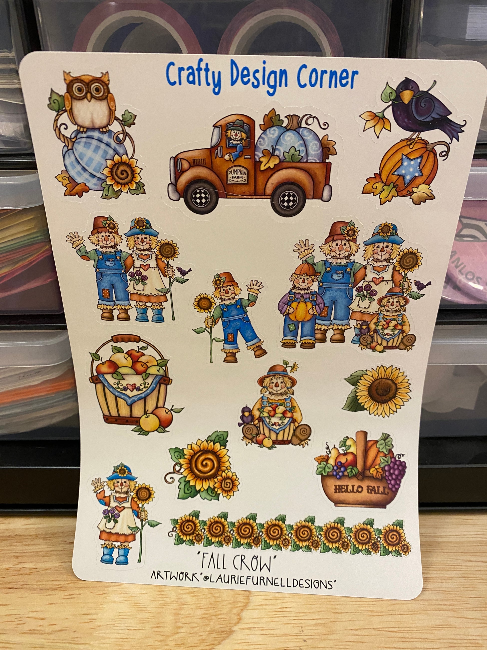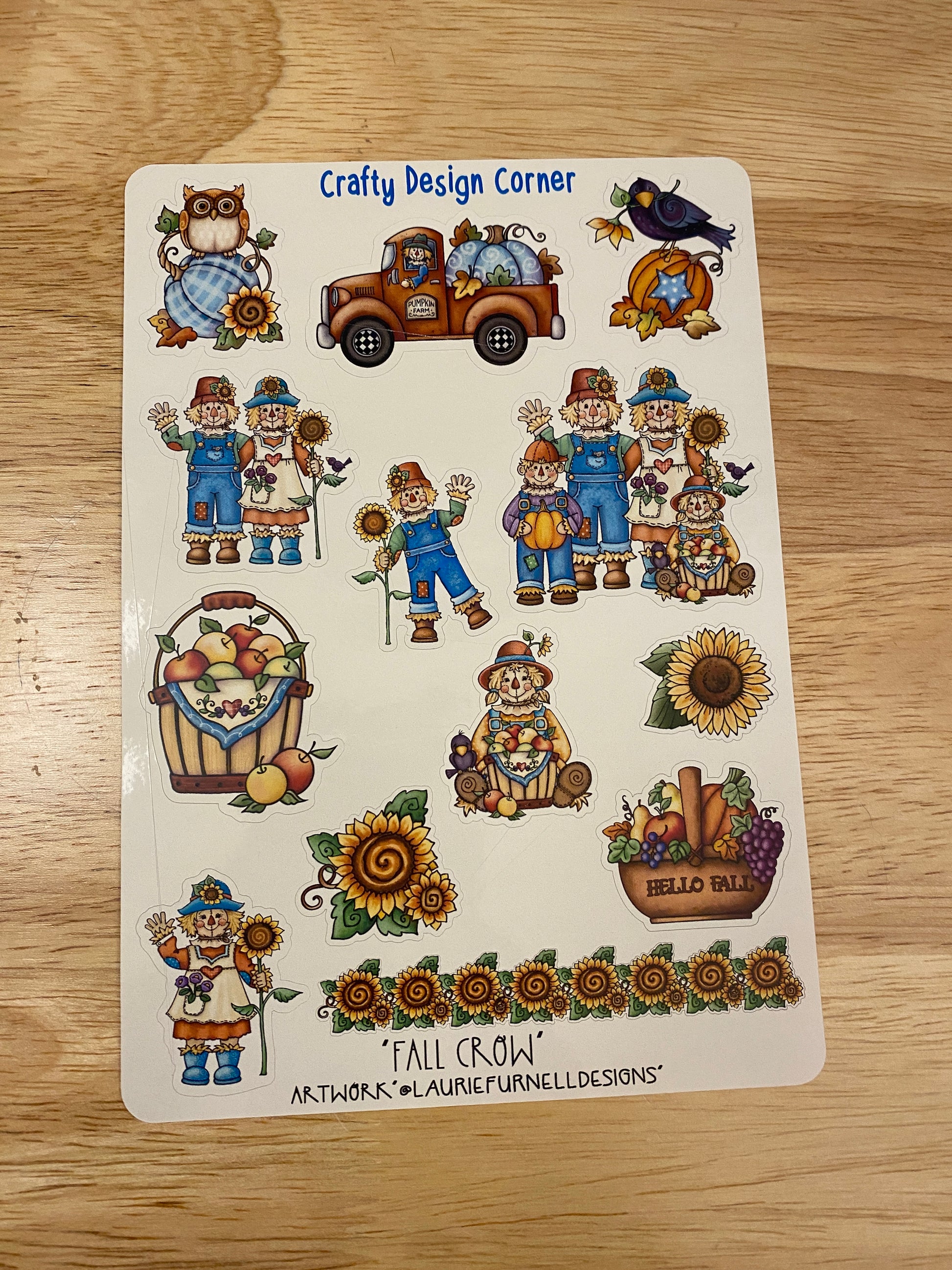 Fall Scarecrow Stickers Sheet, Sunflower Sticker, Crow Sticker, Fall Sticker Sheet, Cute Scare Crow with Sunflower sticker sheet