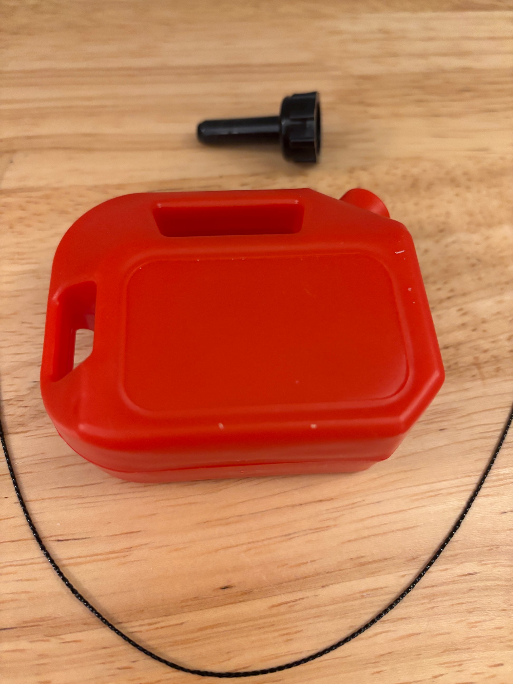 **** no money or string is included, this is just for the red plastic can and the plastic nozzle that fits on the can. ****