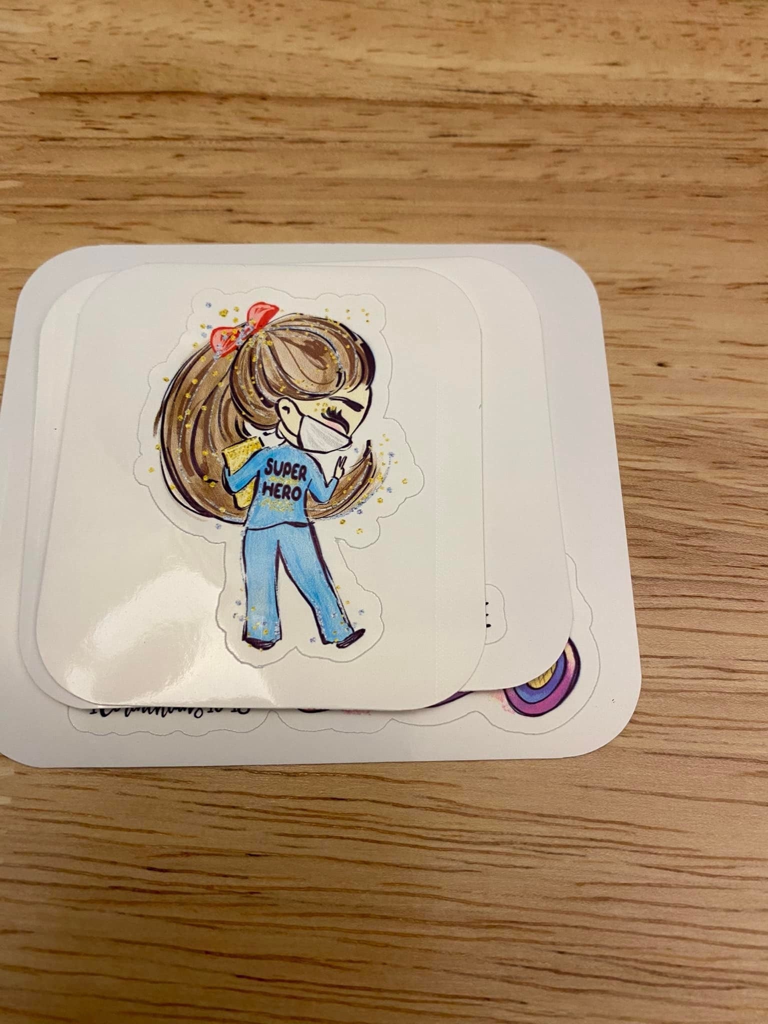 Medical Super Hero Sticker. Stickers are printed on very strong White Vinyl type of Paper and then cut around each sticker leaving a small white out-lining. They can be added to almost any hard non-textured surface. Great to decorate your laptop.