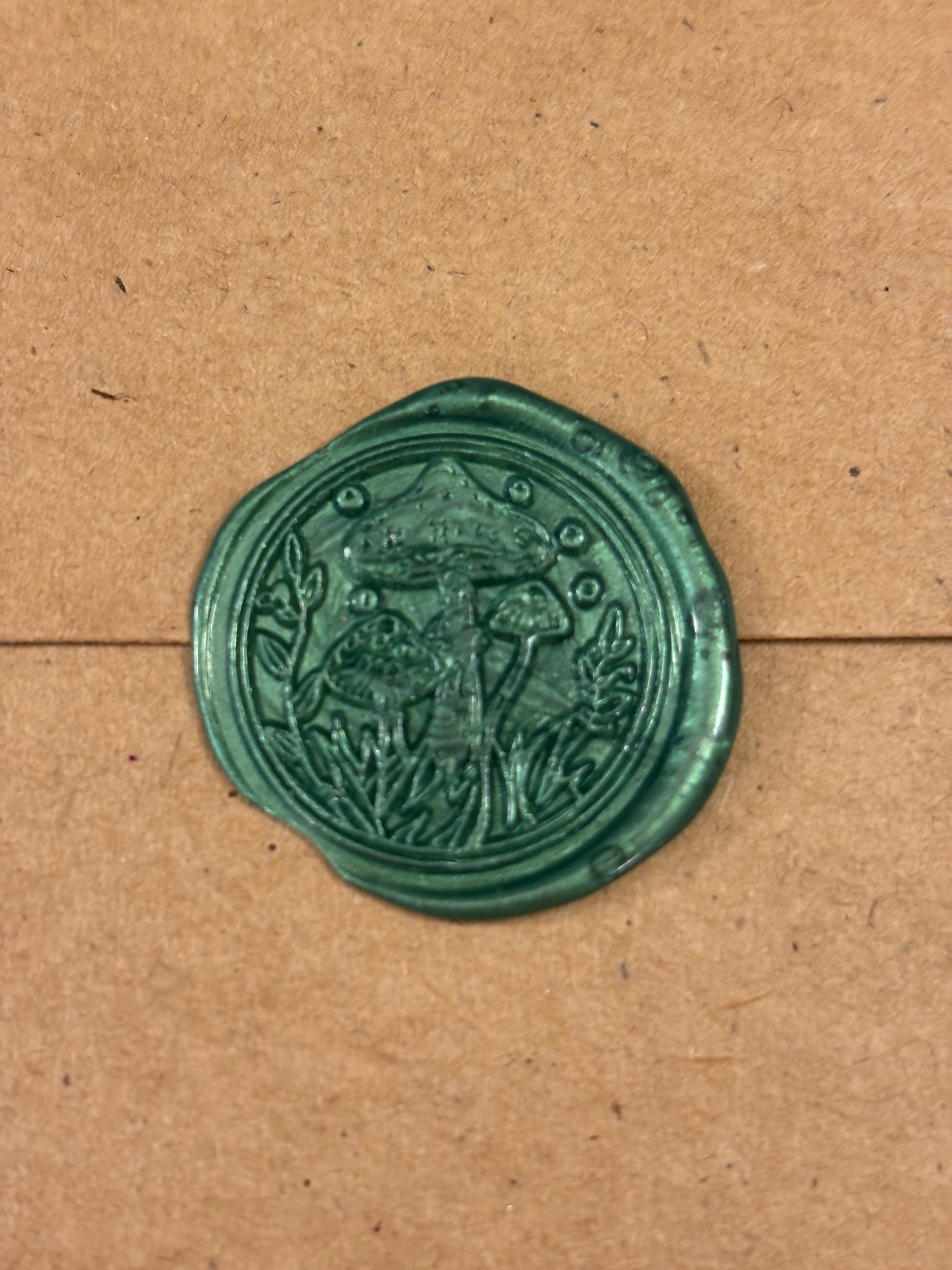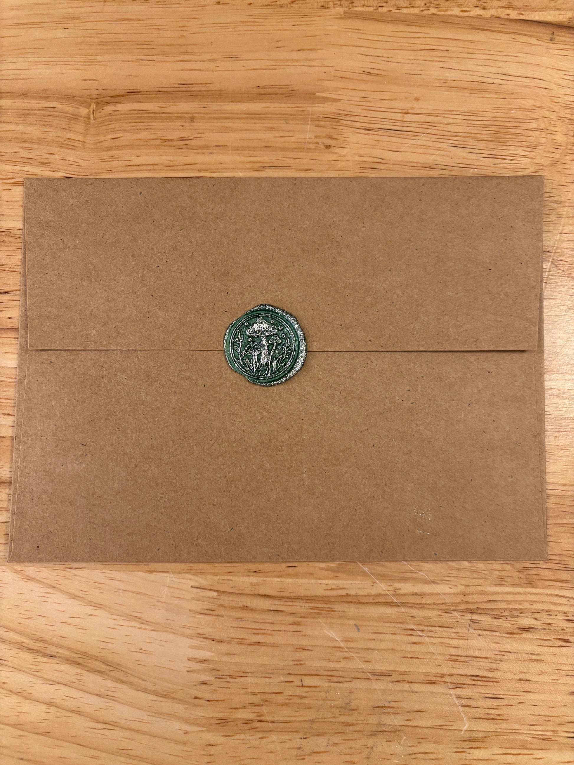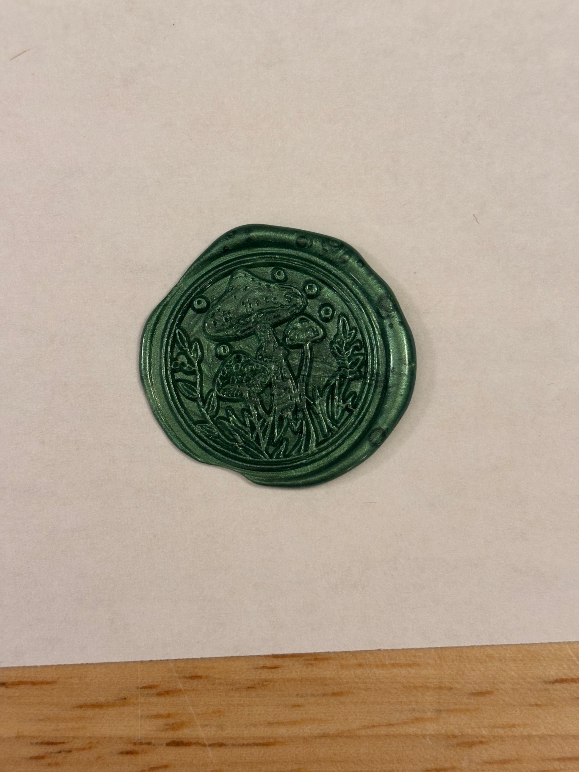 ❤Mushroom Forest Wax Seal, with double sided adhesive on back to stick to envelop or announcement, etc. These are all handmade by myself, there may be imperfections, and may not be a rounded circle, as I personally pour the wax, and stamp them, not any two will be 100% the same.