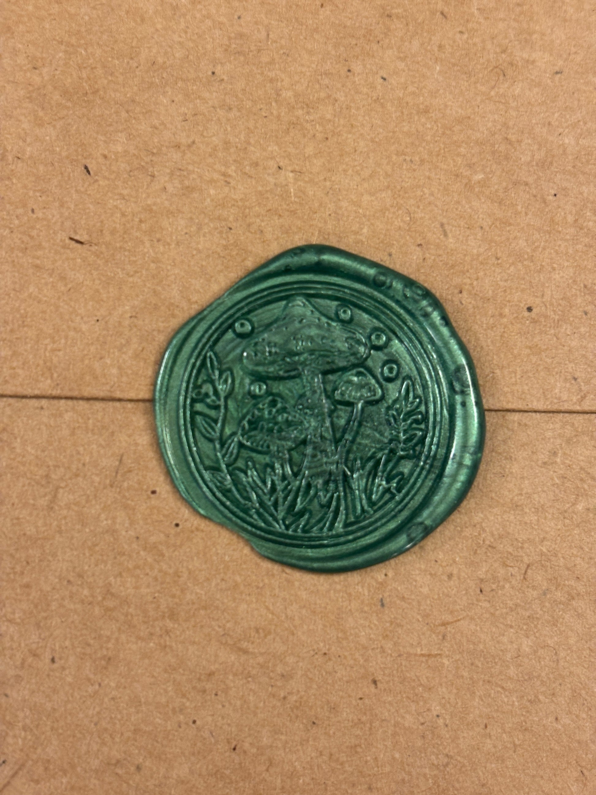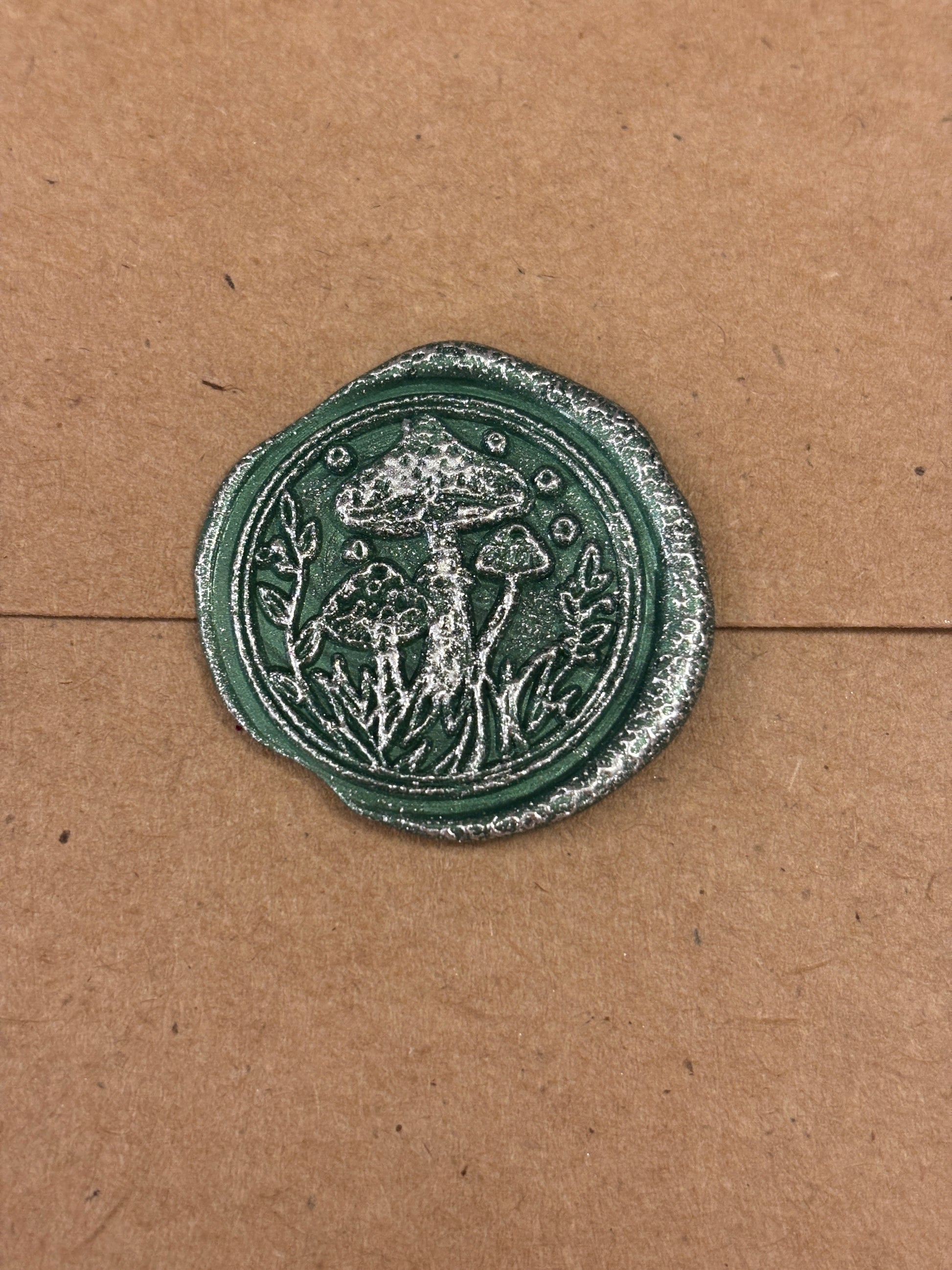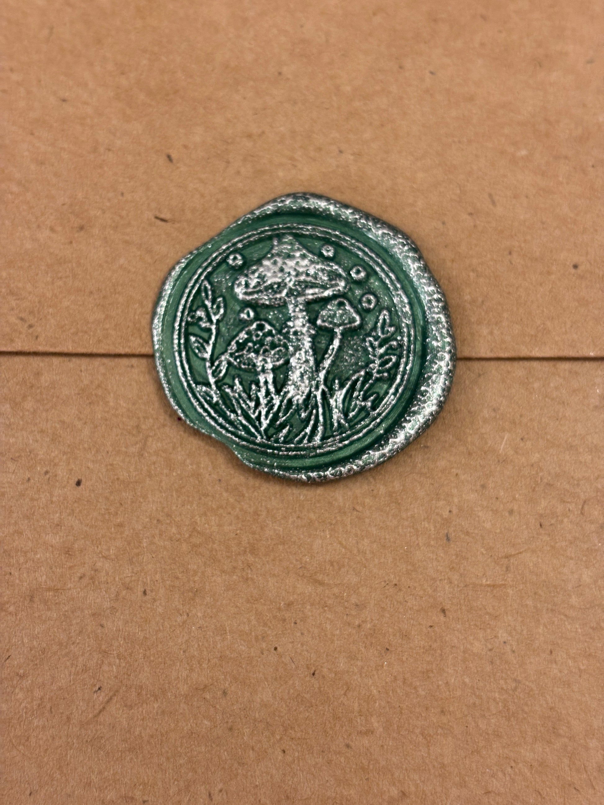 ❤Mushroom Forest Wax Seal, with double sided adhesive on back to stick to envelop or announcement, etc. These are all handmade by myself, there may be imperfections, and may not be a rounded circle, as I personally pour the wax, and stamp them, not any two will be 100% the same.