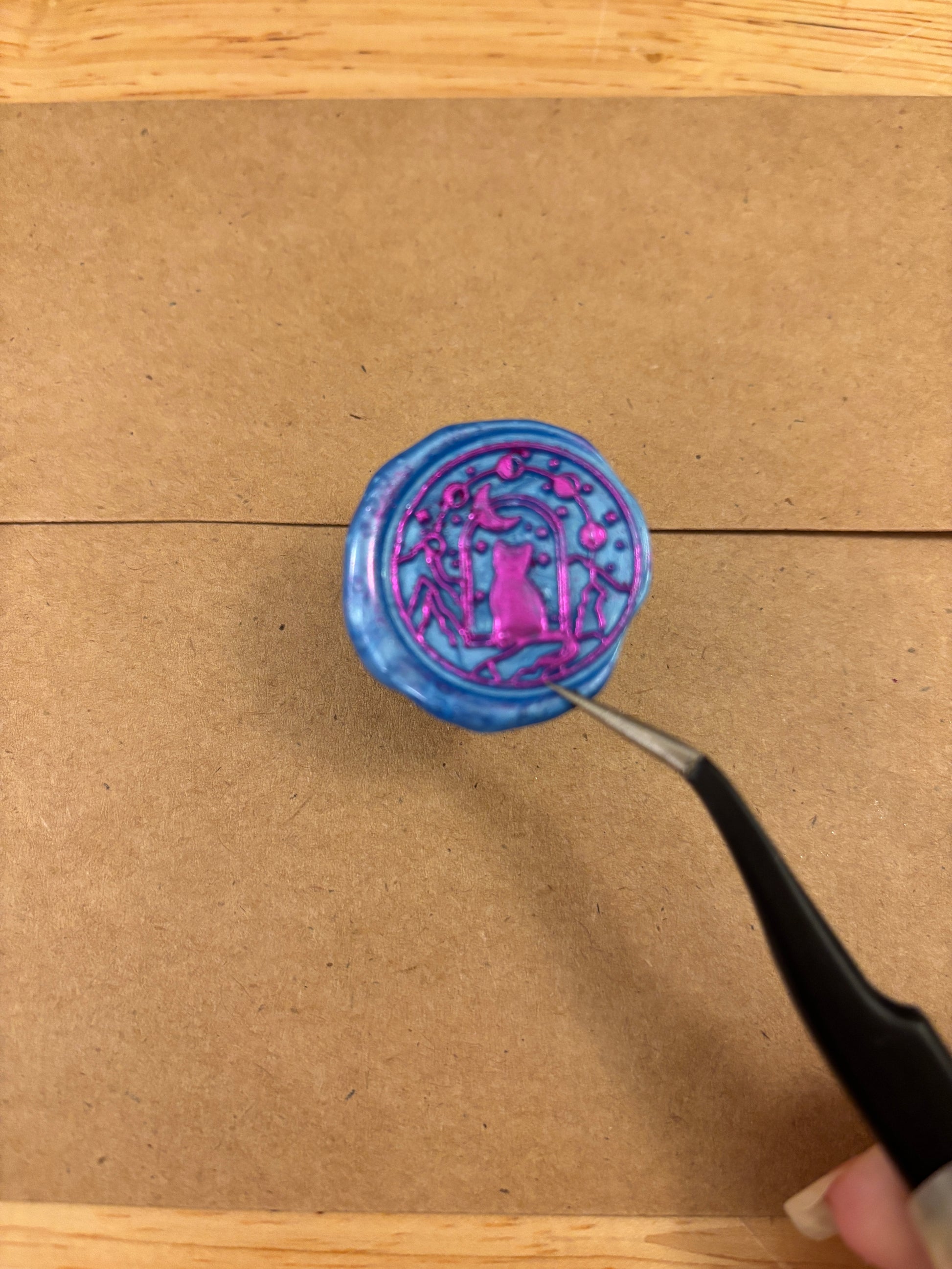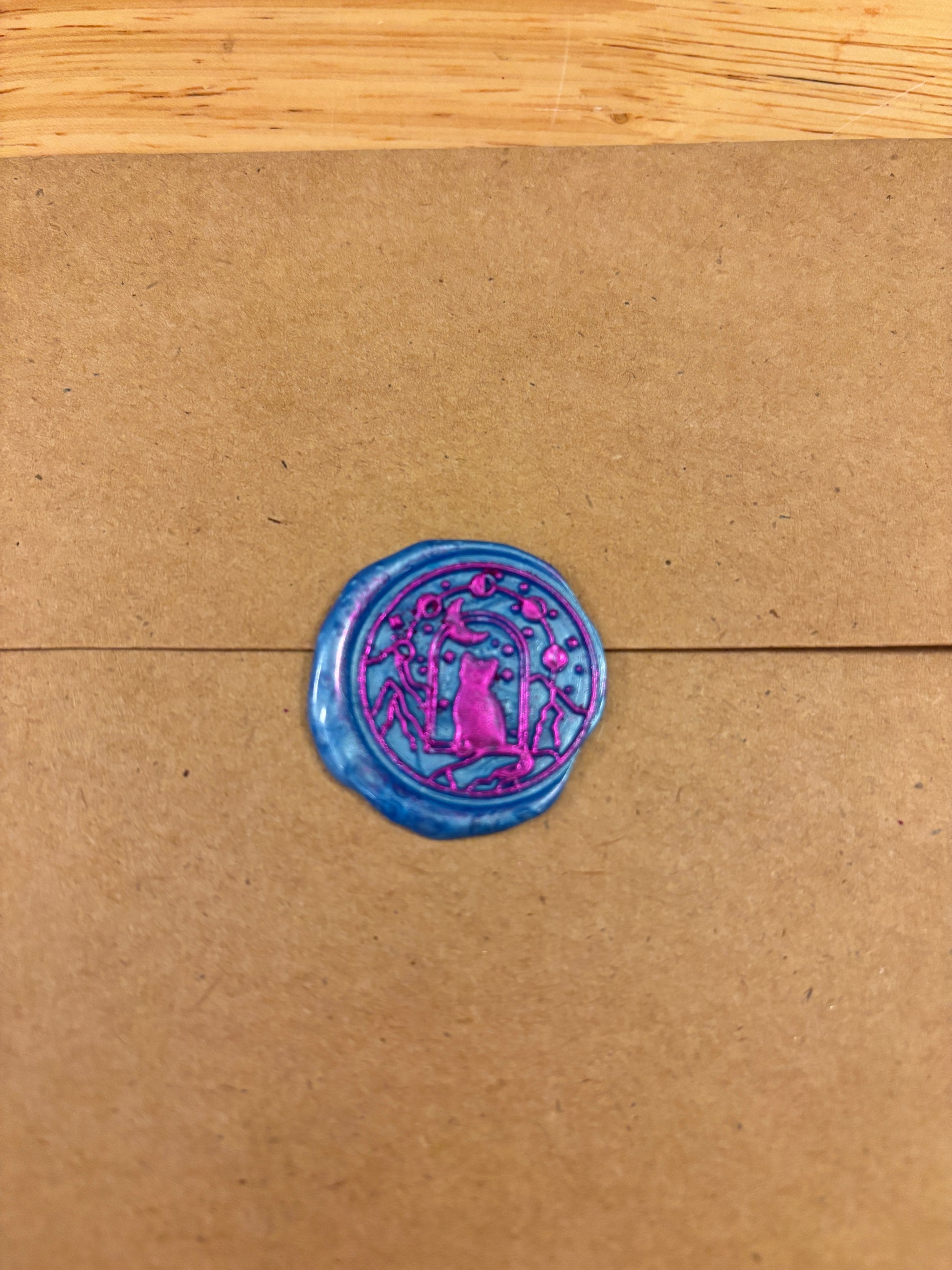 ❤Night Cat in Window Wax Seal, with double sided adhesive on back to stick to envelop or announcement, etc. These are all handmade by myself, there may be imperfections, and may not be a rounded circle, as I personally pour the wax, and stamp them, not any two will be 100% the same.