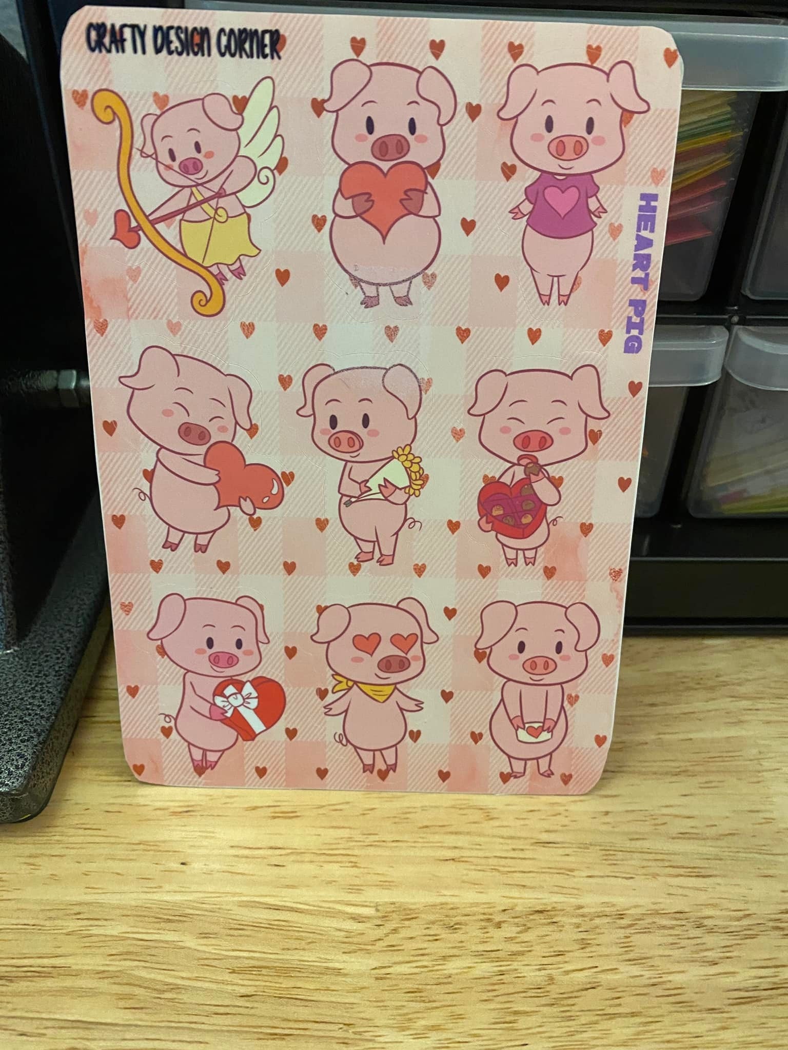 1.6" Valentine Pigs Pink Stickers, this is printed on White Glossy Sticker Paper and then cut around each sticker. Can add to any hard surface, idea for planners. There is 9 stickers on this sheet.
