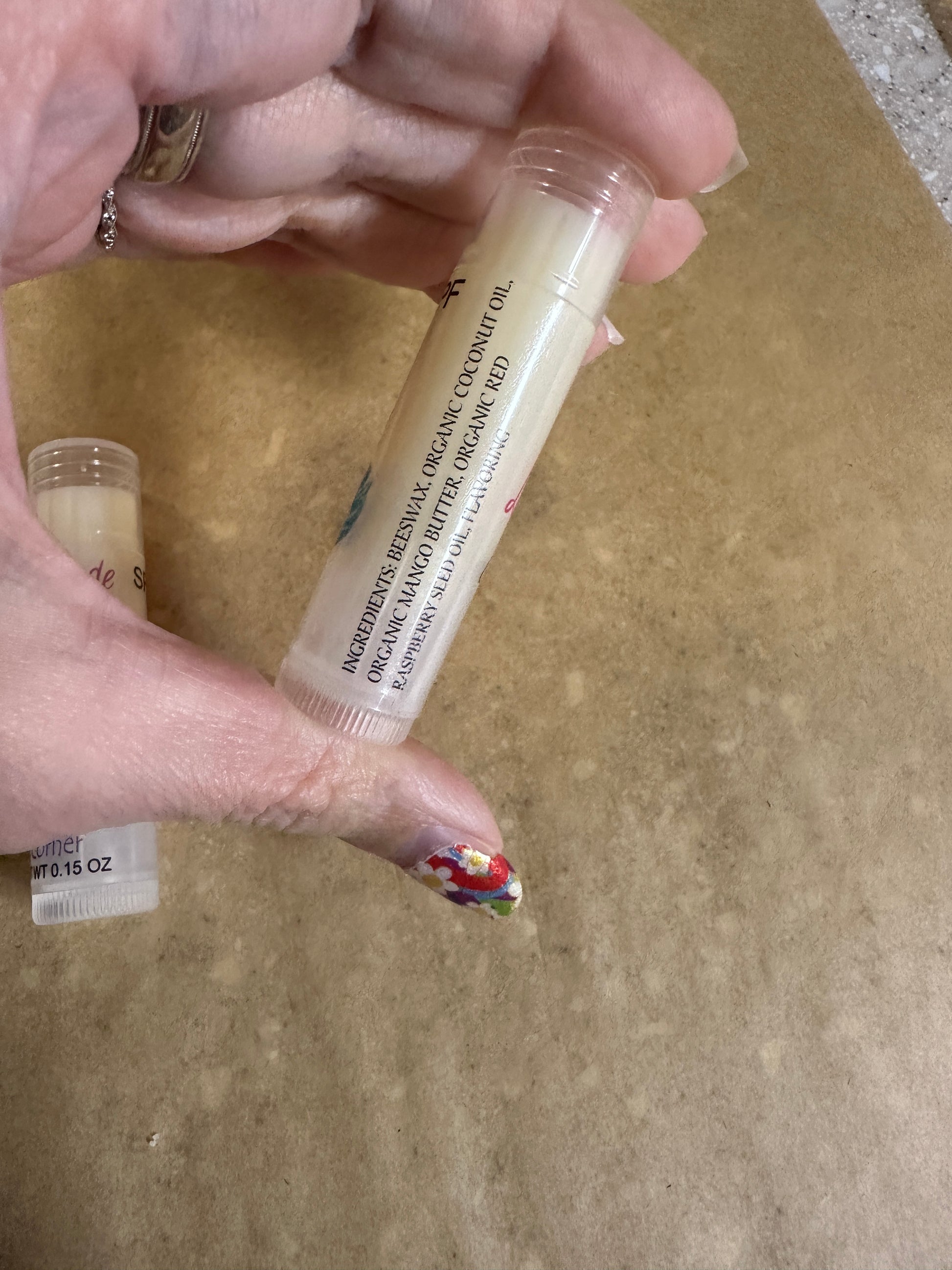 Home made Lip Balm, made with real Beeswax, Mango Butter, Coconut Oil, Red Raspberry Seed Oil and Flavoring.