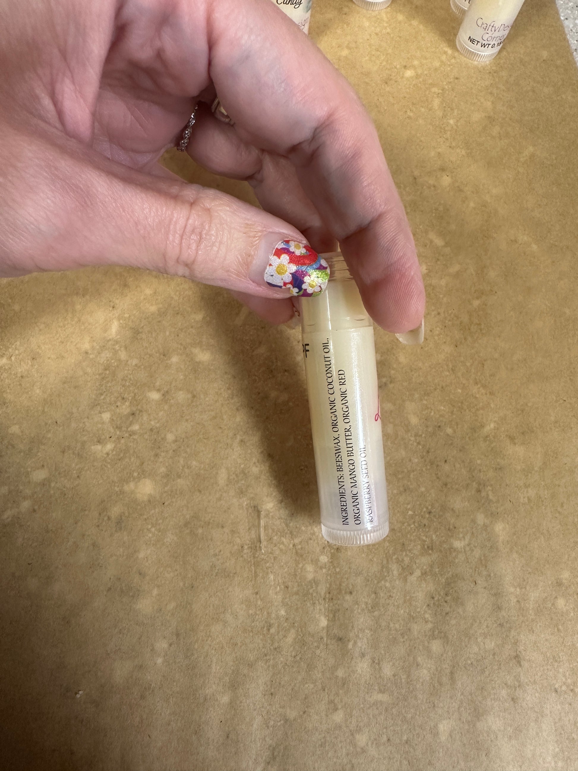 Home made Lip Balm, made with real Beeswax, Mango Butter, Coconut Oil, Red Raspberry Seed Oil and Flavoring.