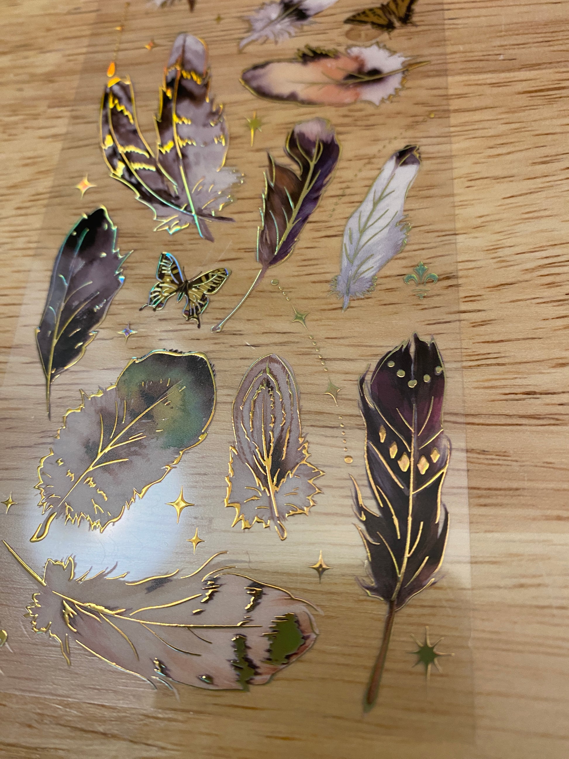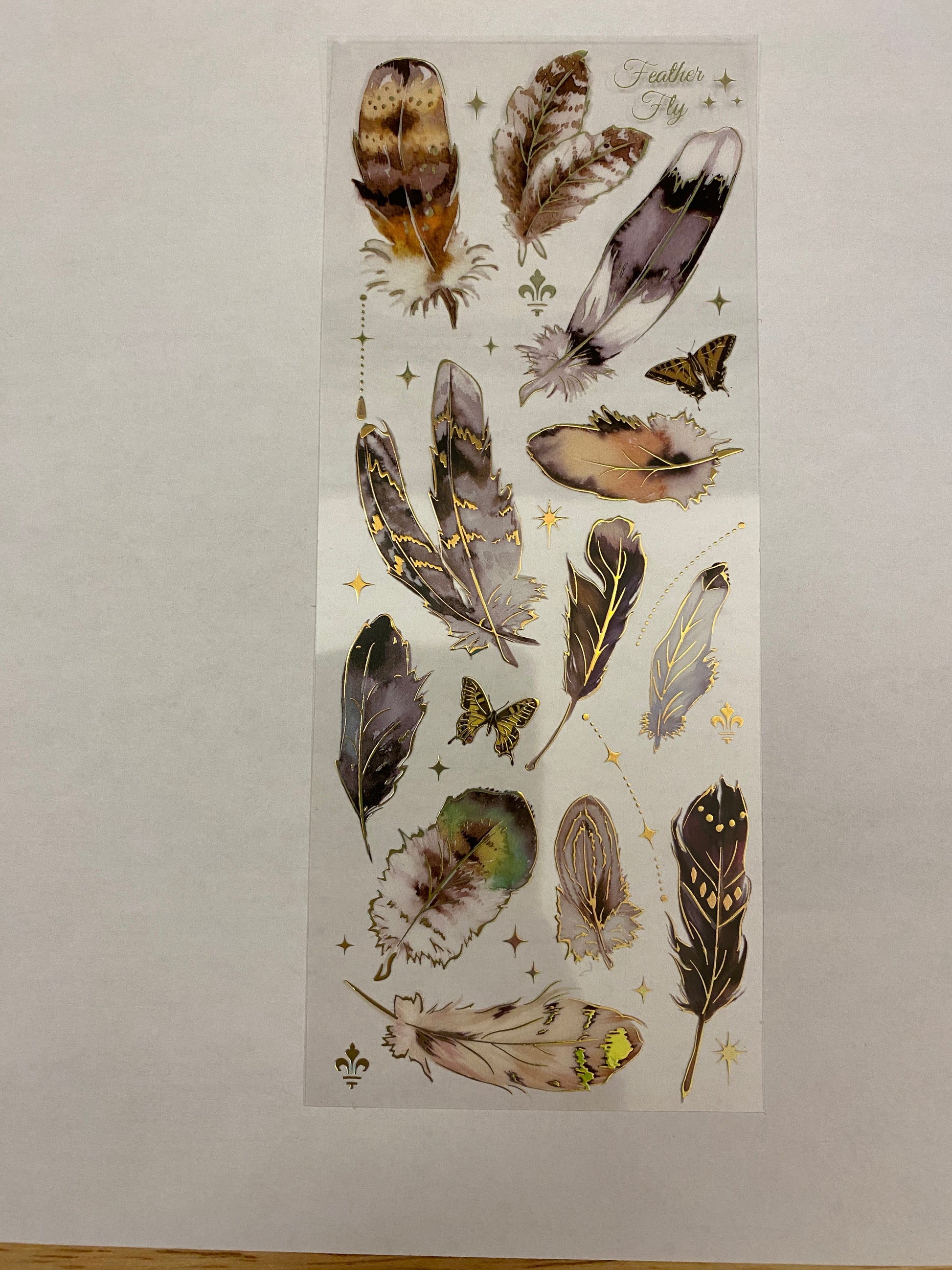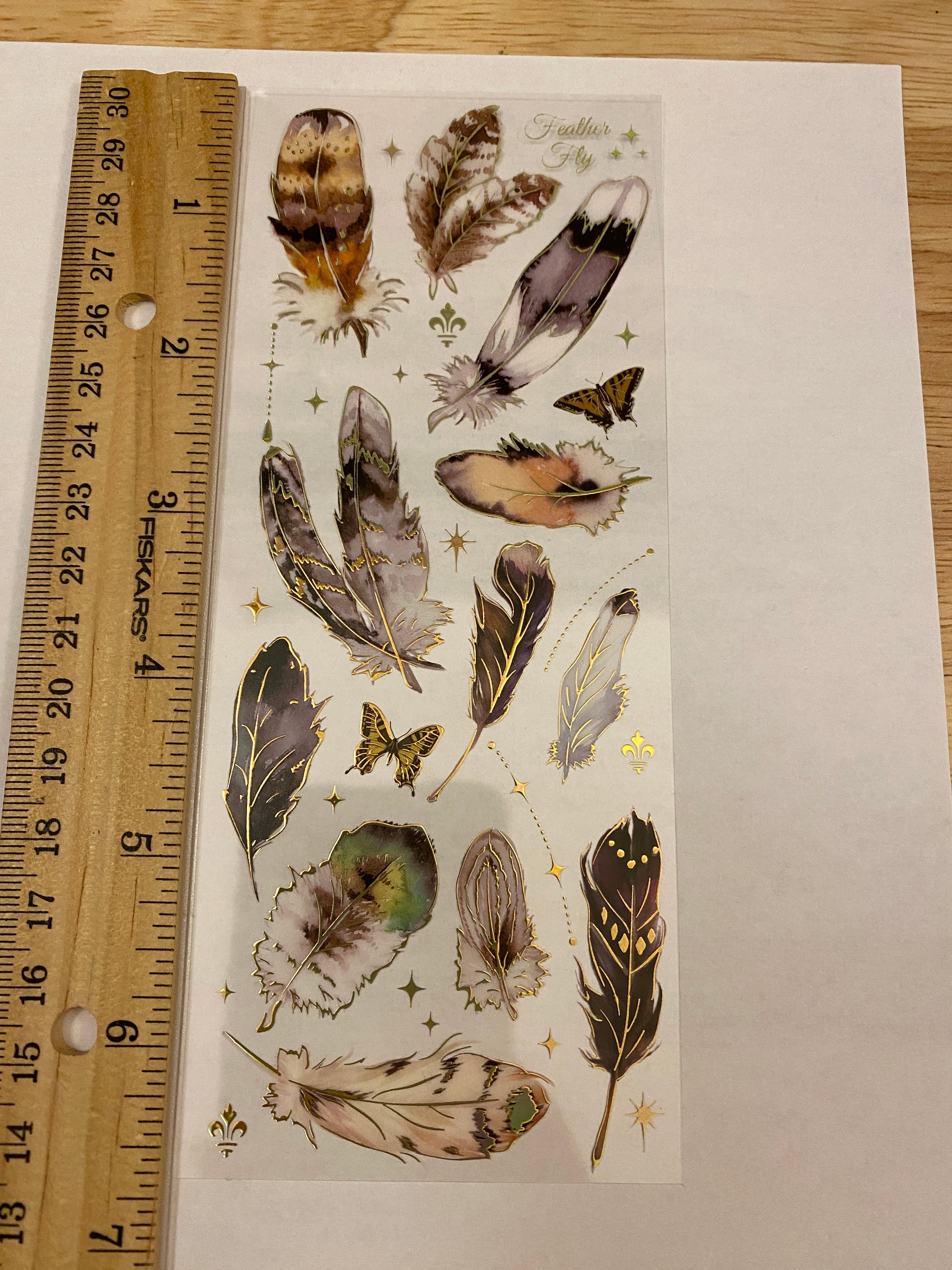 s some outlined with Gold Foil. Decorative Sticker Tape For Scrap booking planner, this is not individual stickers, these are all on the washi tape, it has a very pretty Gold Foil raised up look. Tape is easy to cut with and you can cut out each Feather.Tape Strip Measurement is: 2.75" x 6.69"