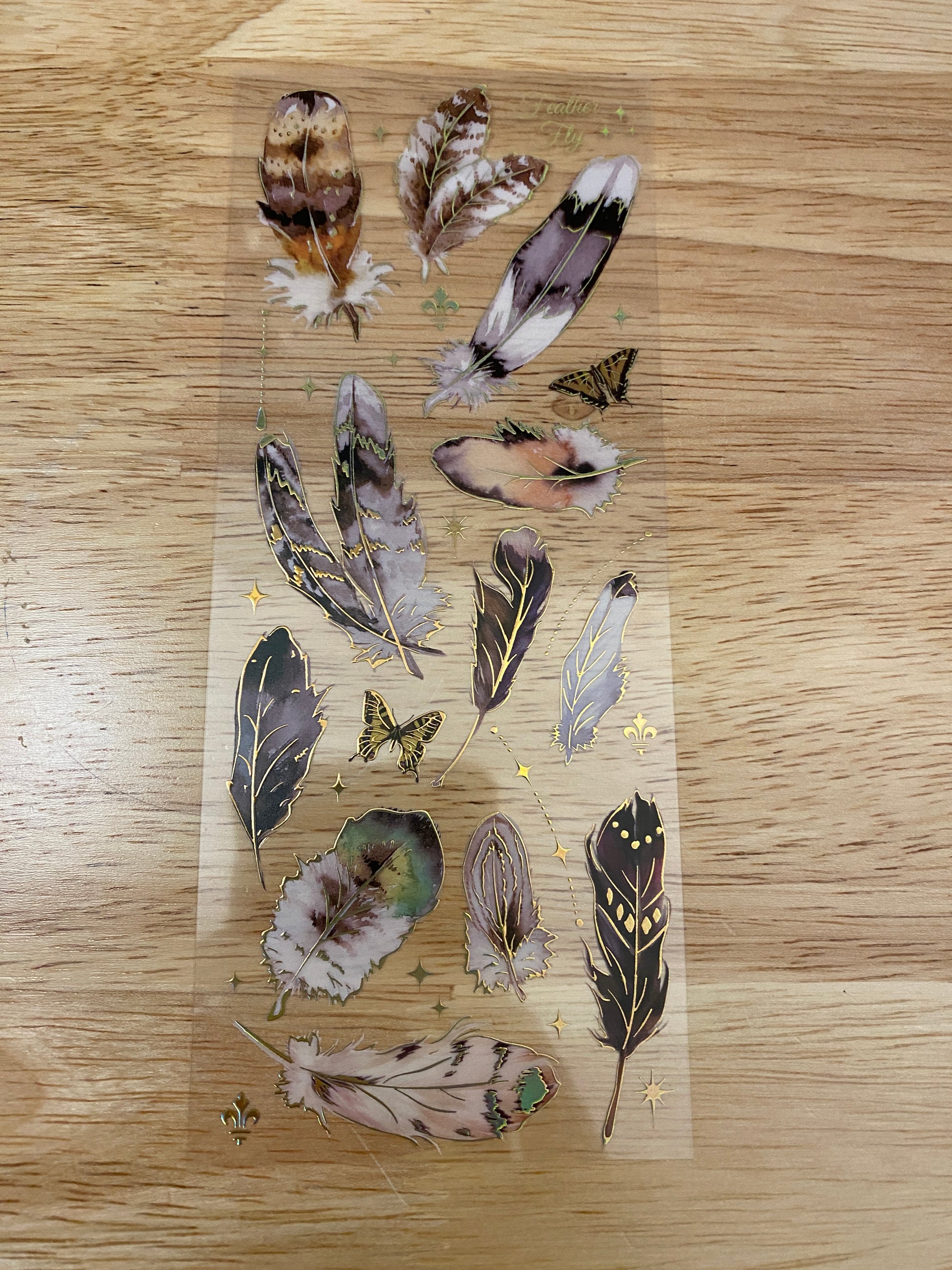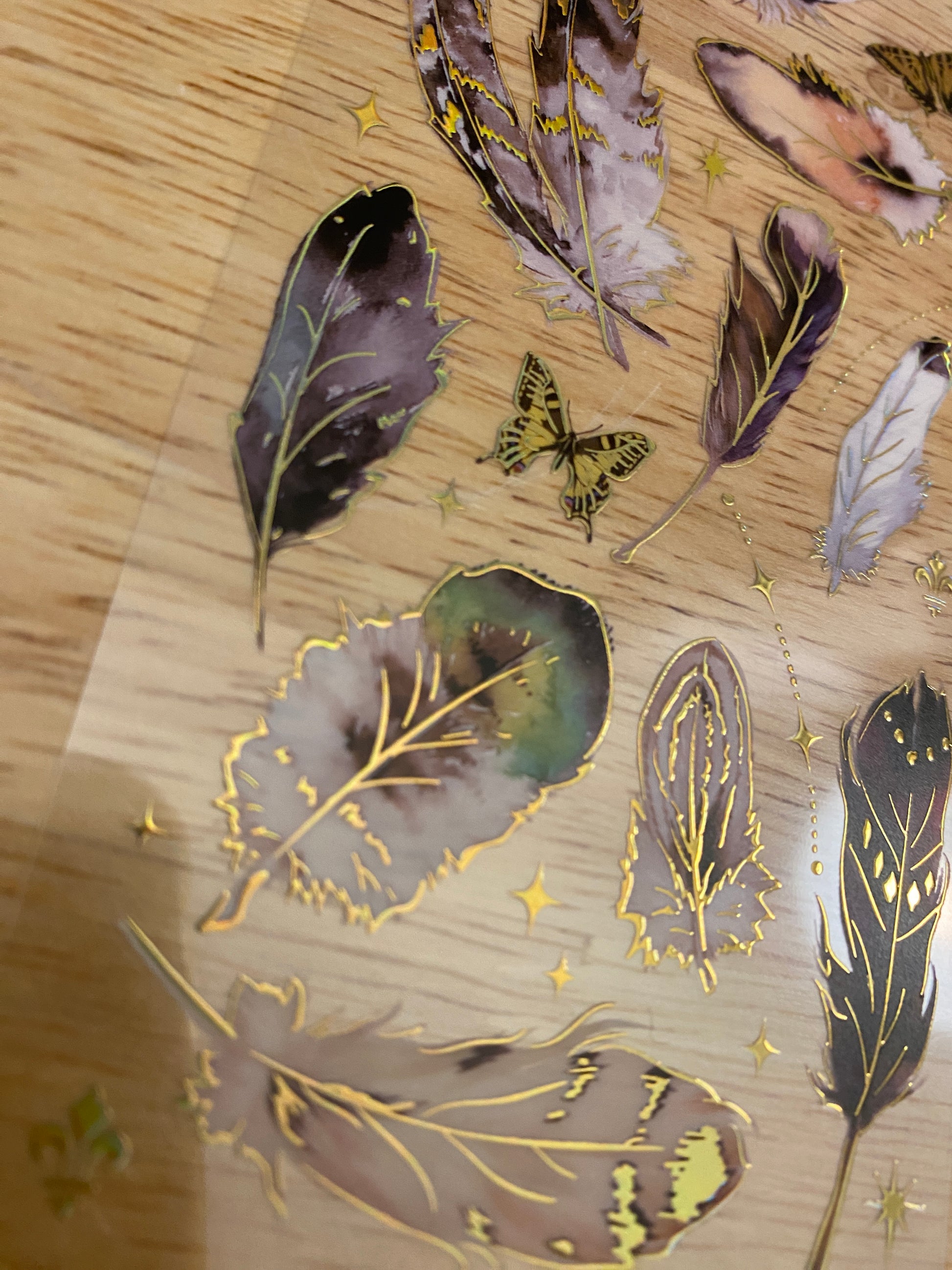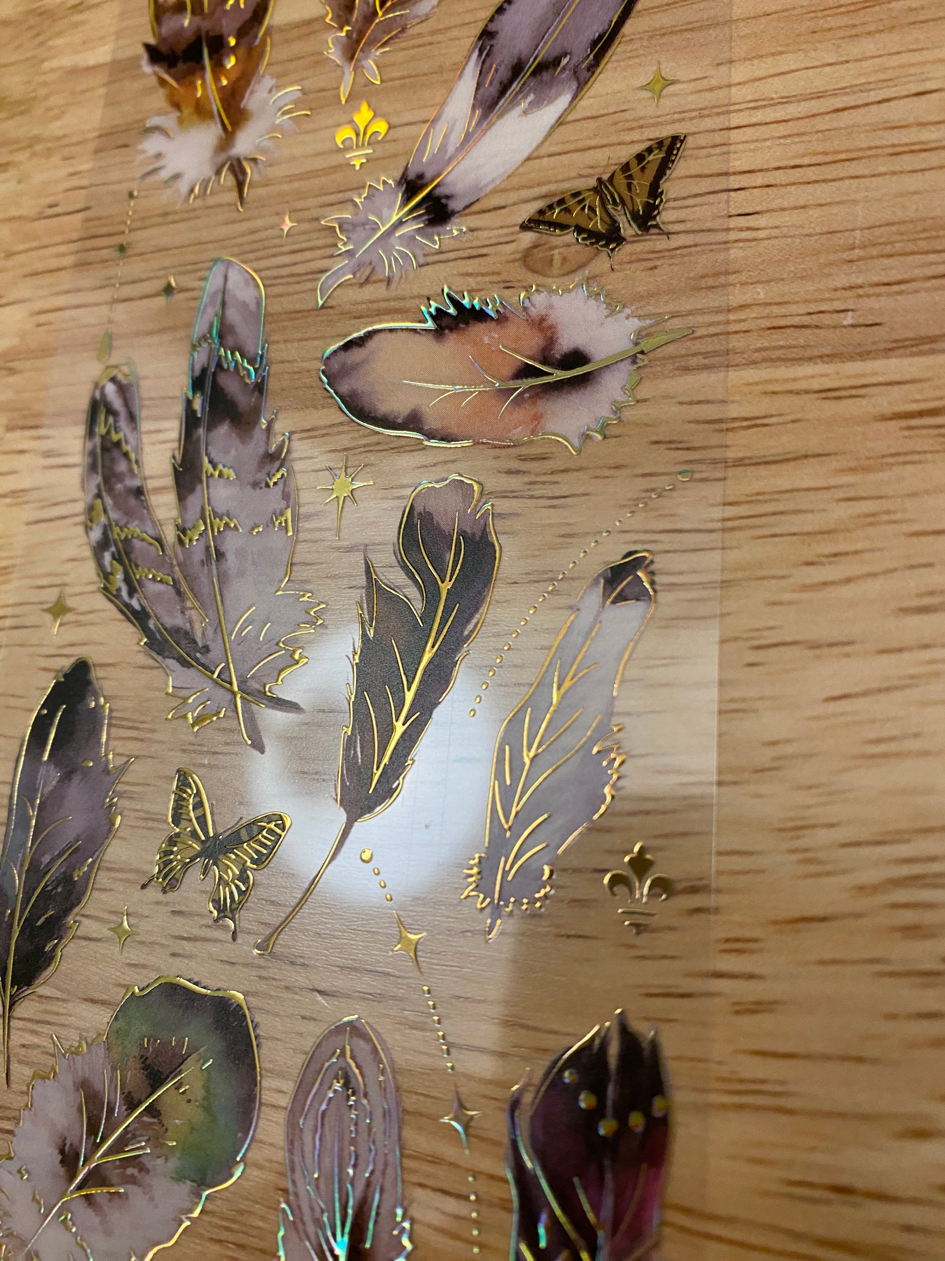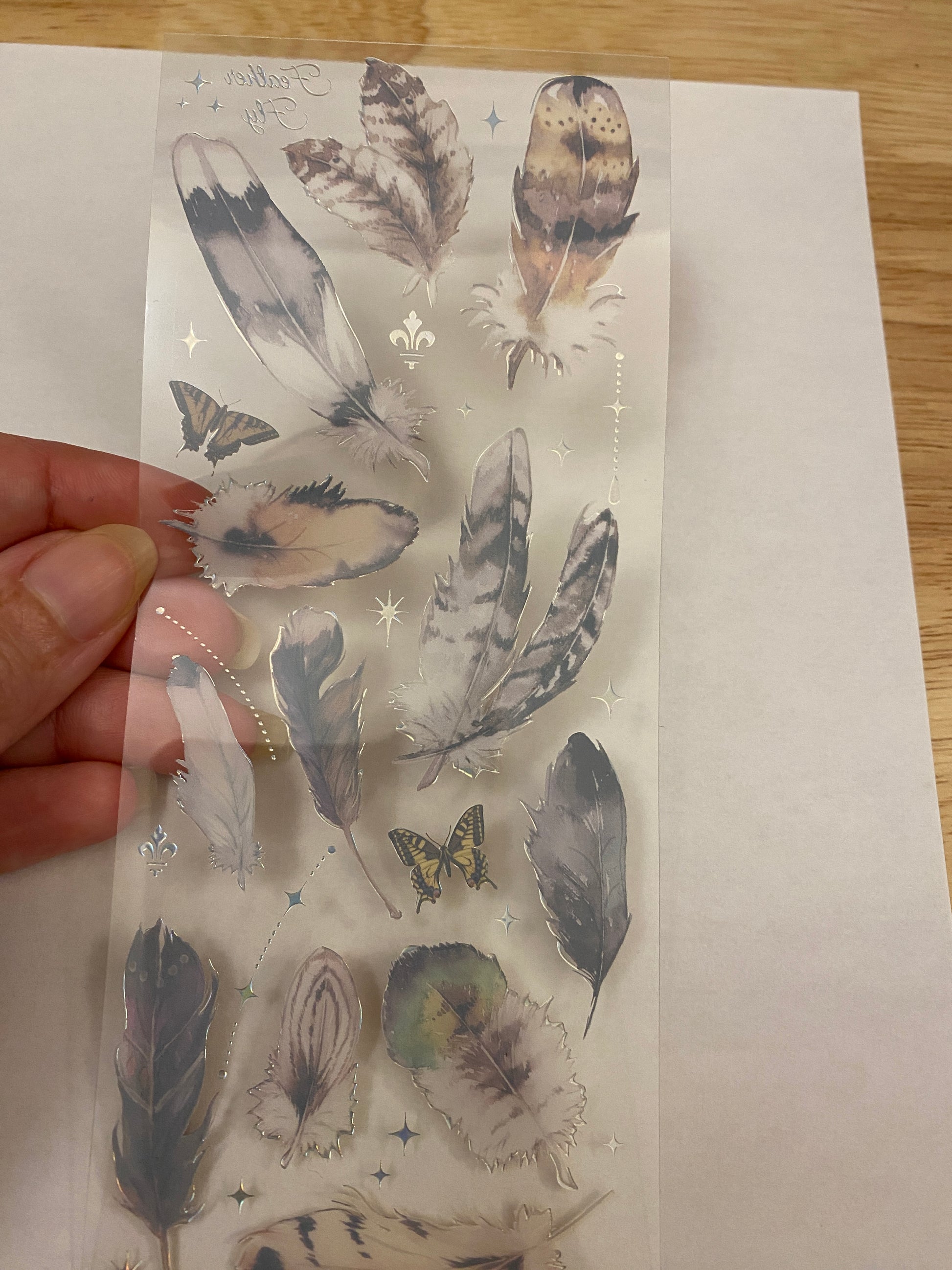 s some outlined with Gold Foil. Decorative Sticker Tape For Scrap booking planner, this is not individual stickers, these are all on the washi tape, it has a very pretty Gold Foil raised up look. Tape is easy to cut with and you can cut out each Feather.Tape Strip Measurement is: 2.75" x 6.69"