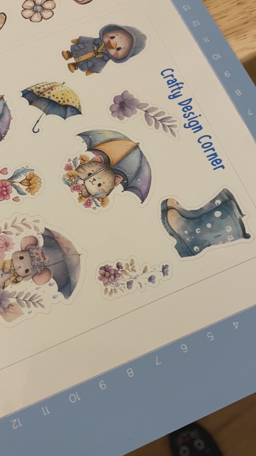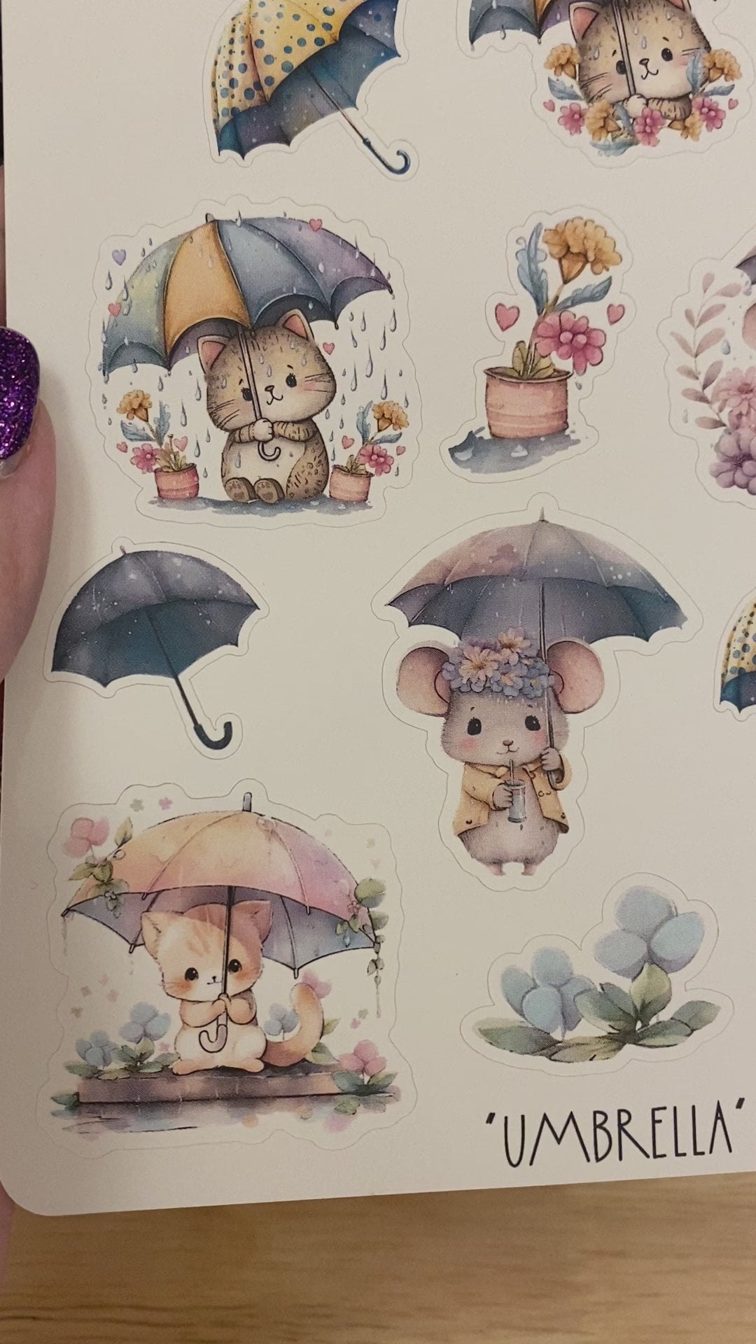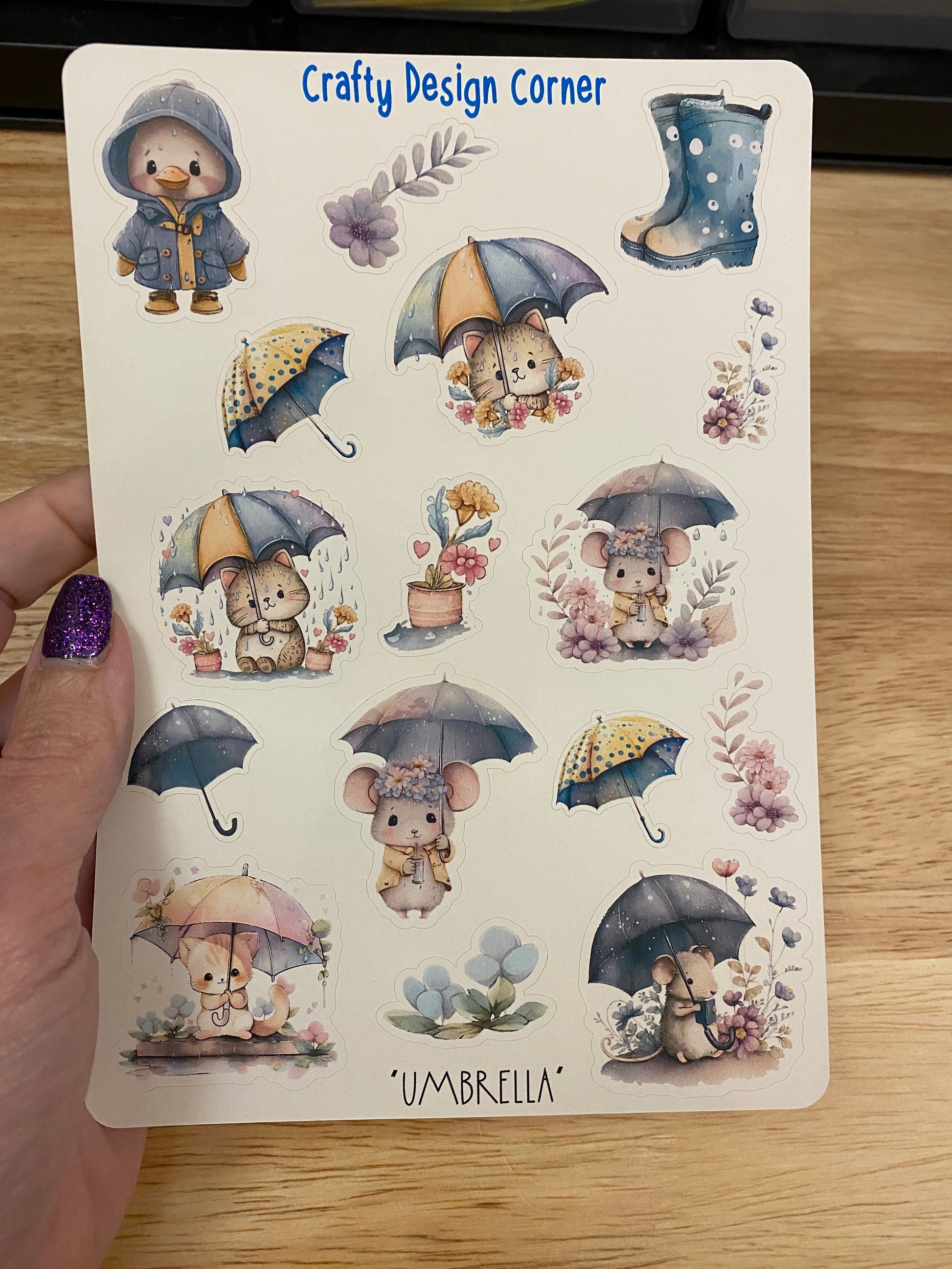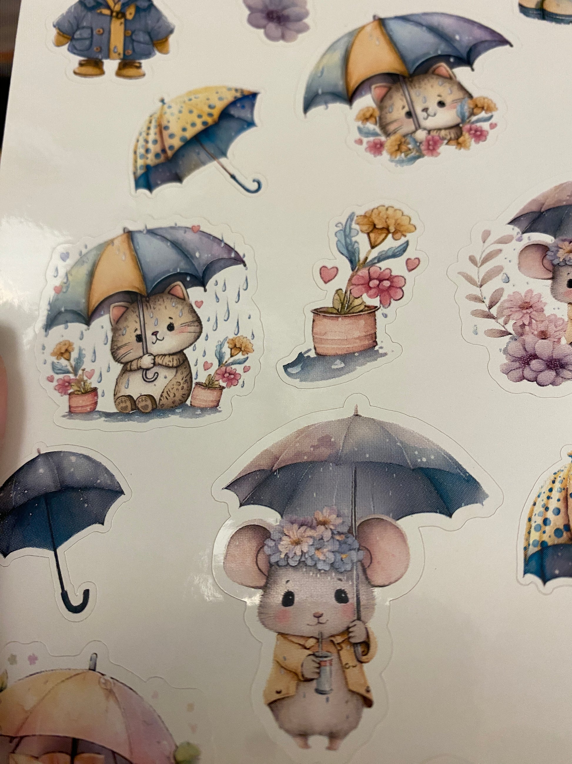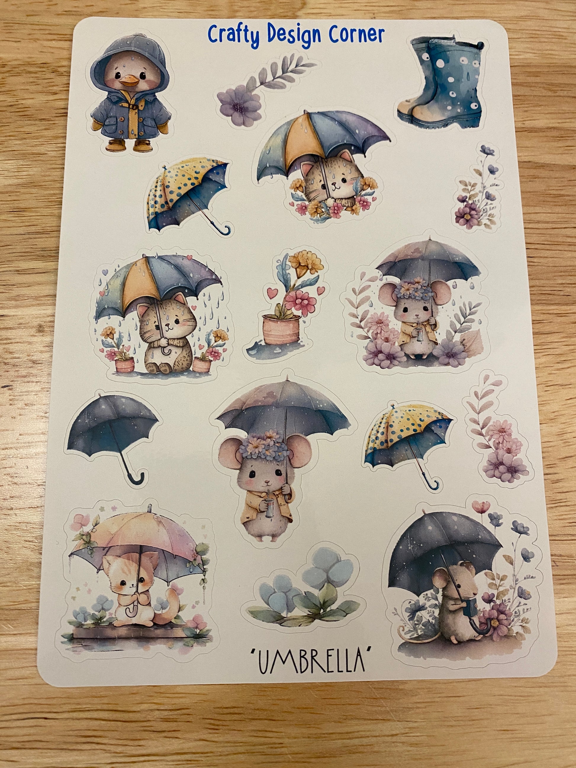 Pets with Umbrellas and Raincoats Sticker Sheet, Umbrella sticker sheet, Rain coats and Umbrella's Sticker Sheet