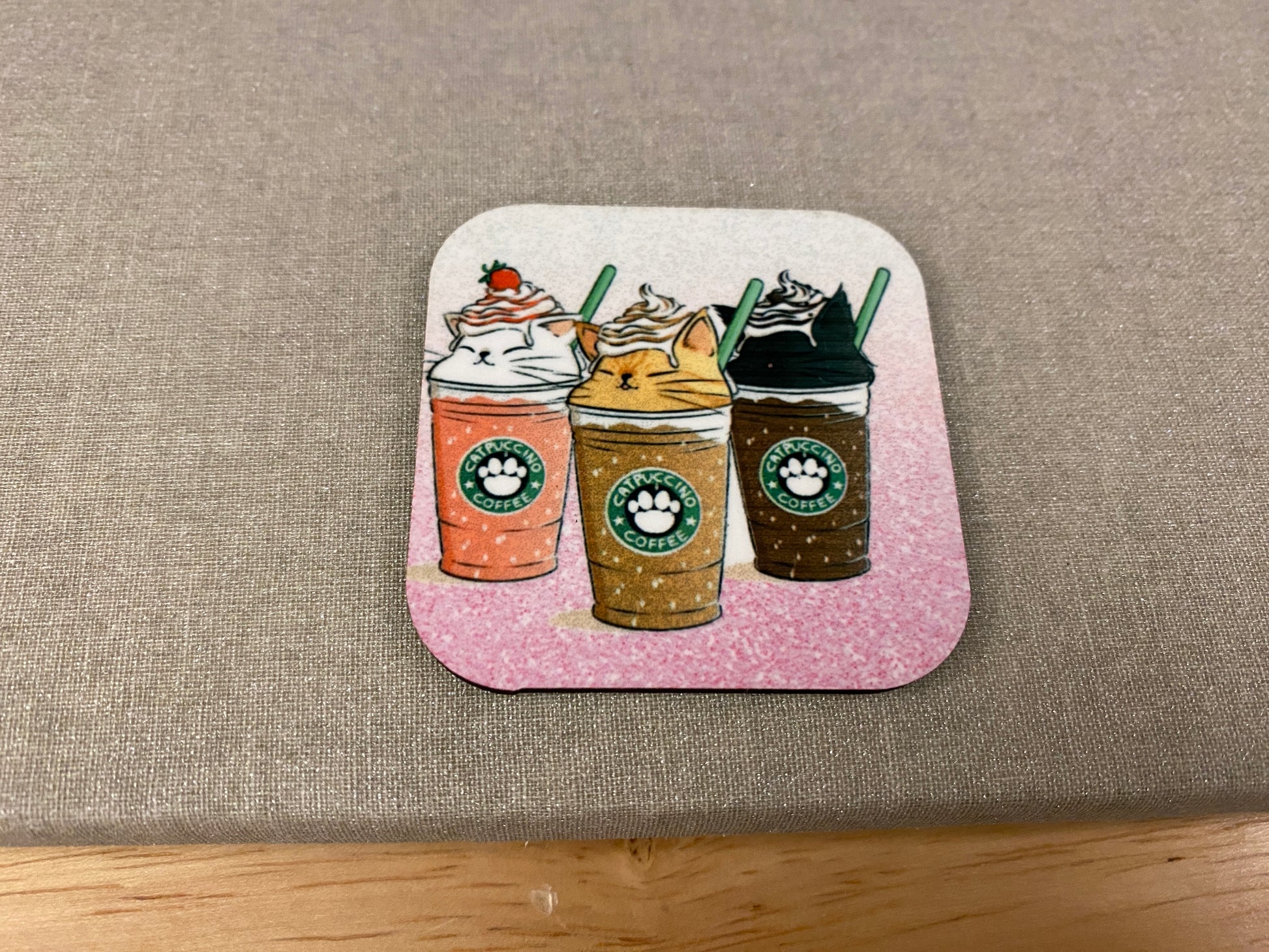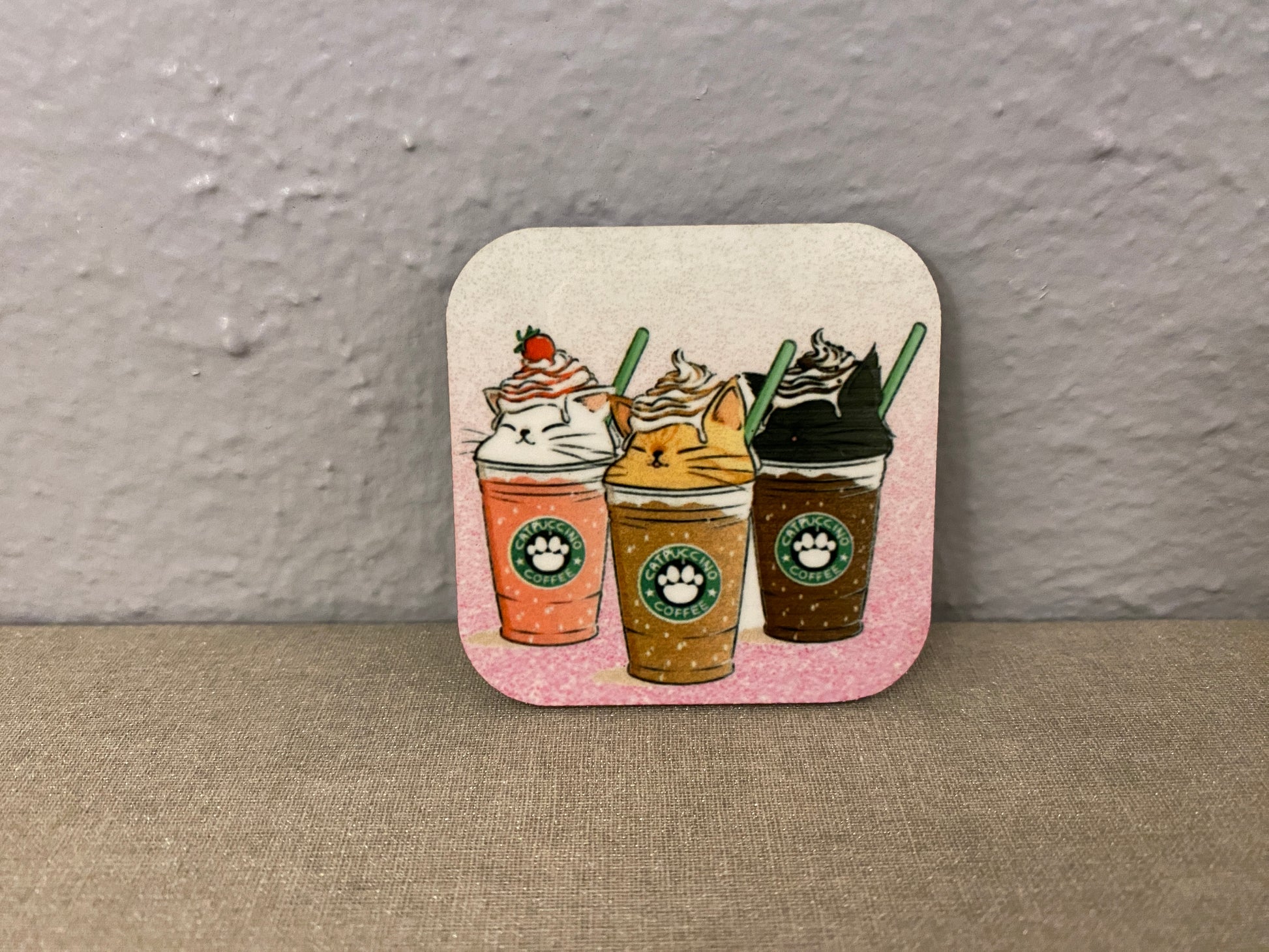 Pink Catpuccino Coffee Cat Magnet for Fridge