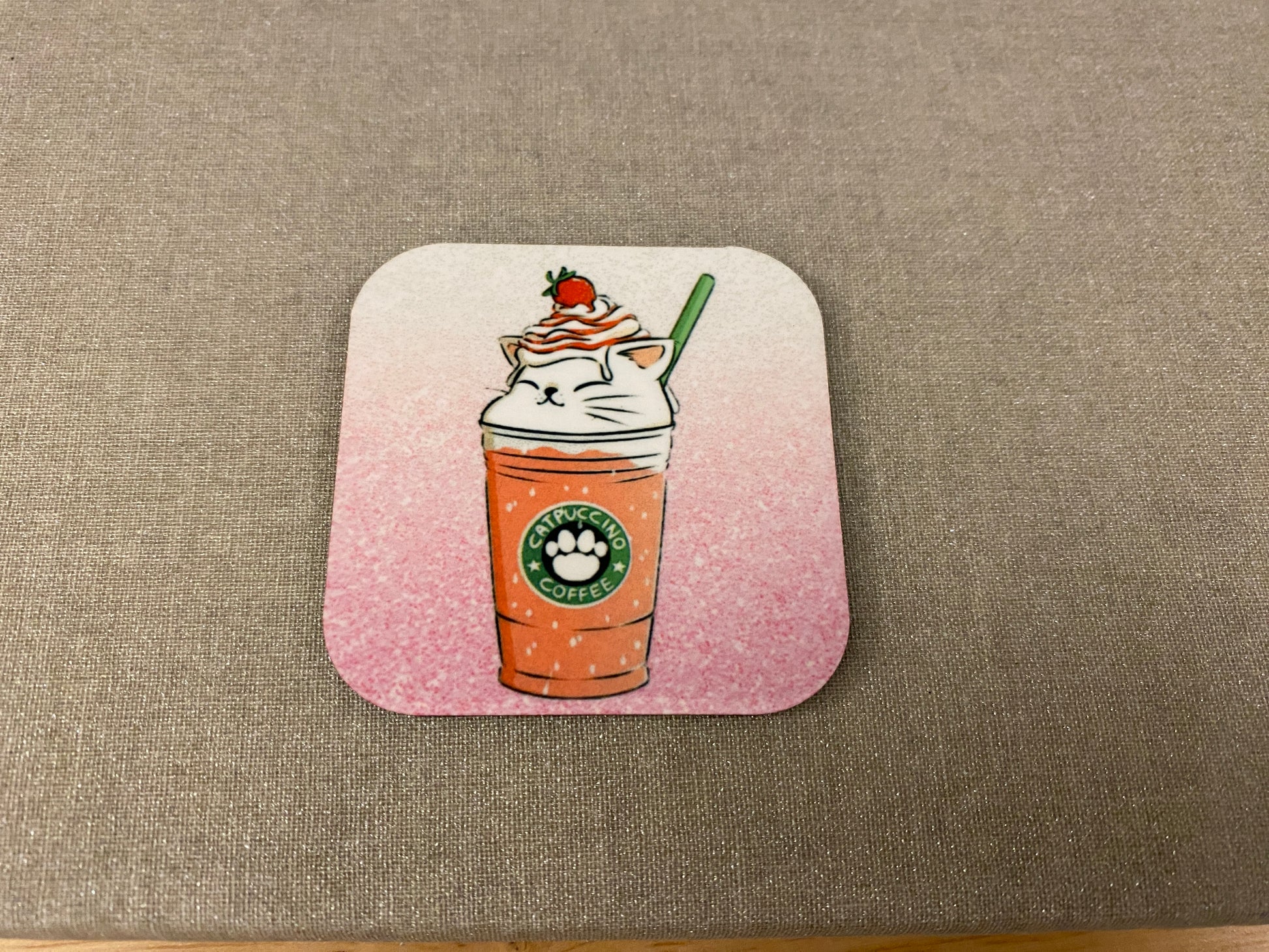 Pink Strawberry Coffee Cat Magnet for Fridge, great to decorate your fridge/freezer, school lover, etc, can hold one piece of normal copy paper.