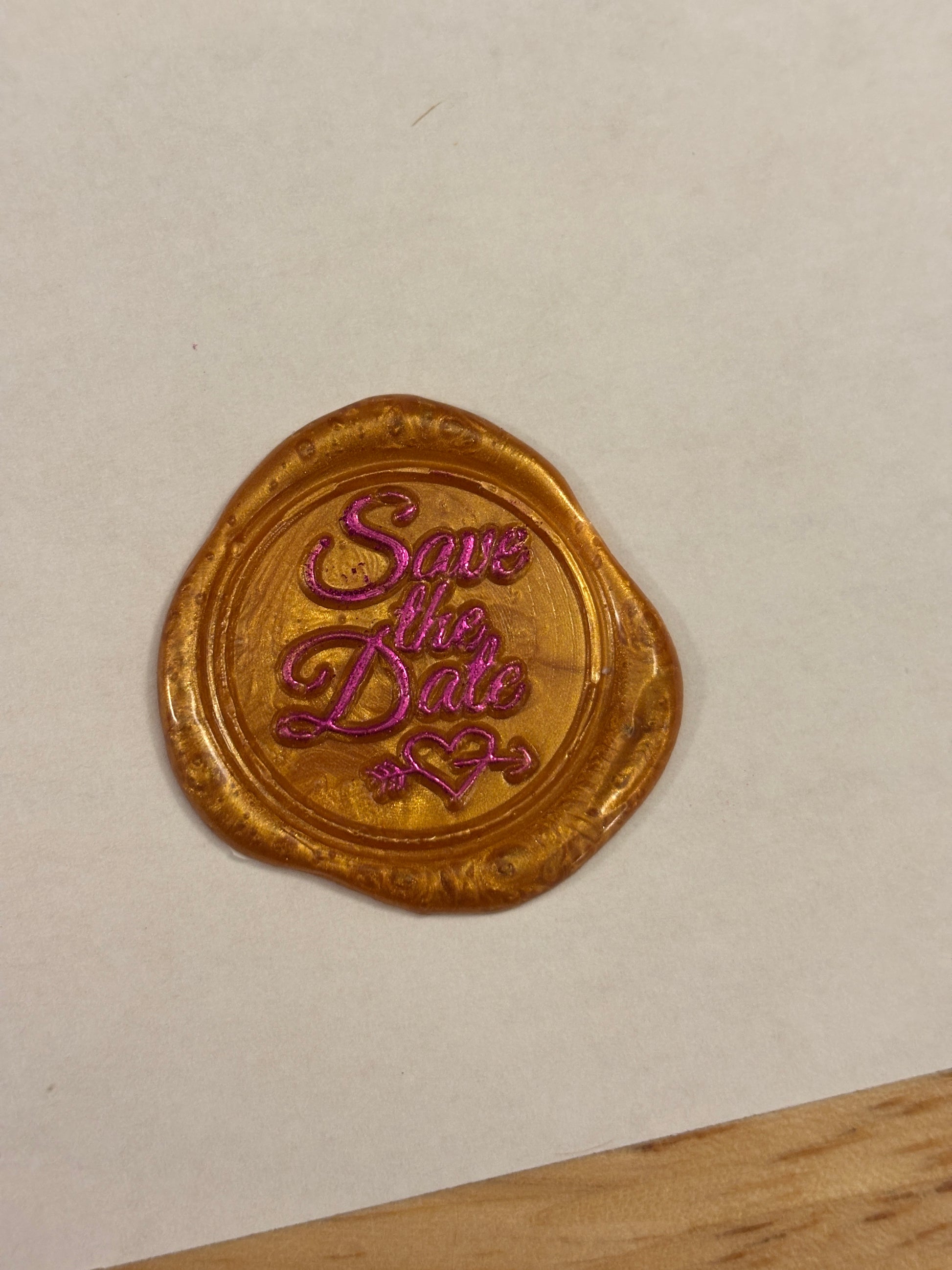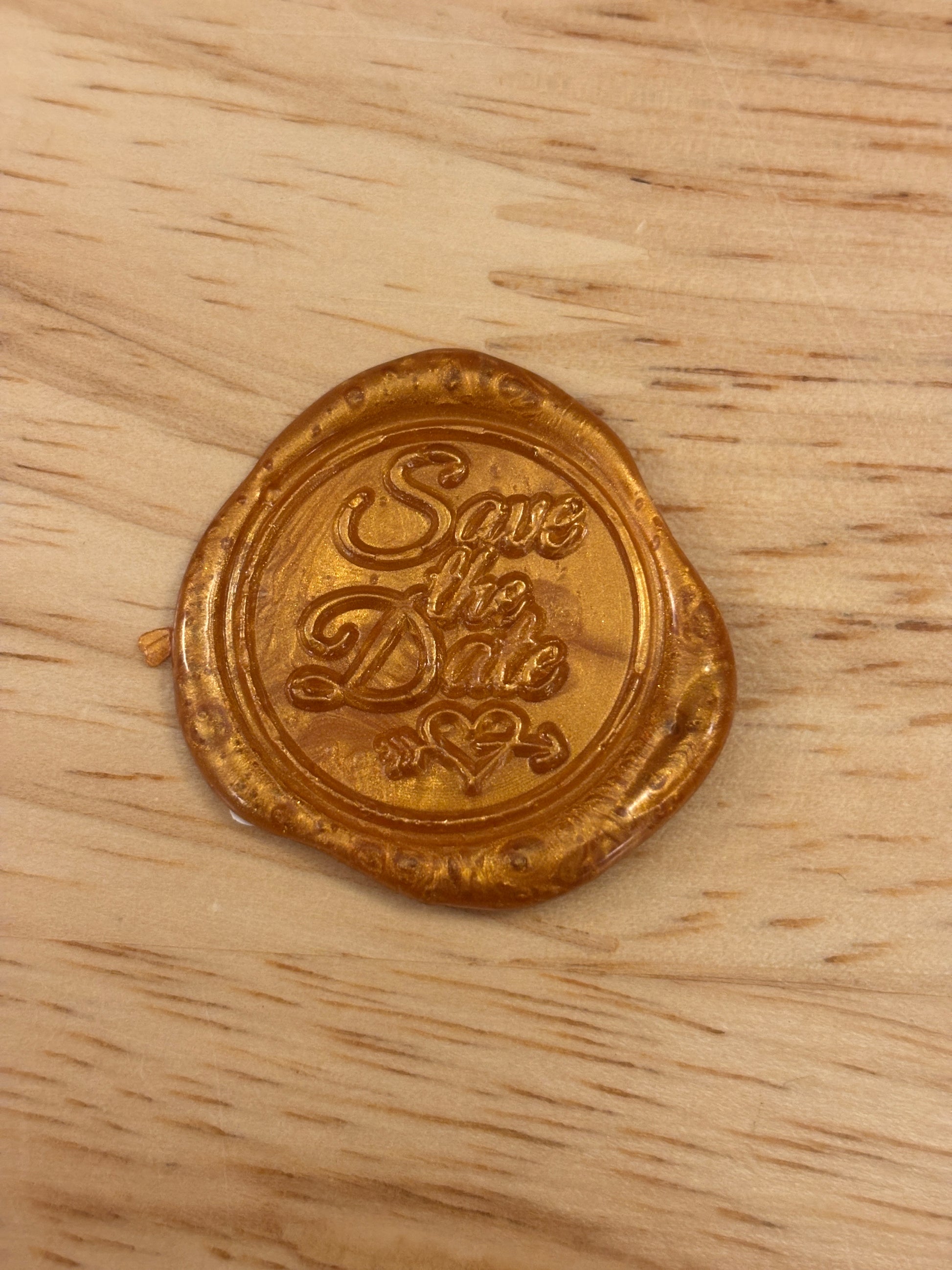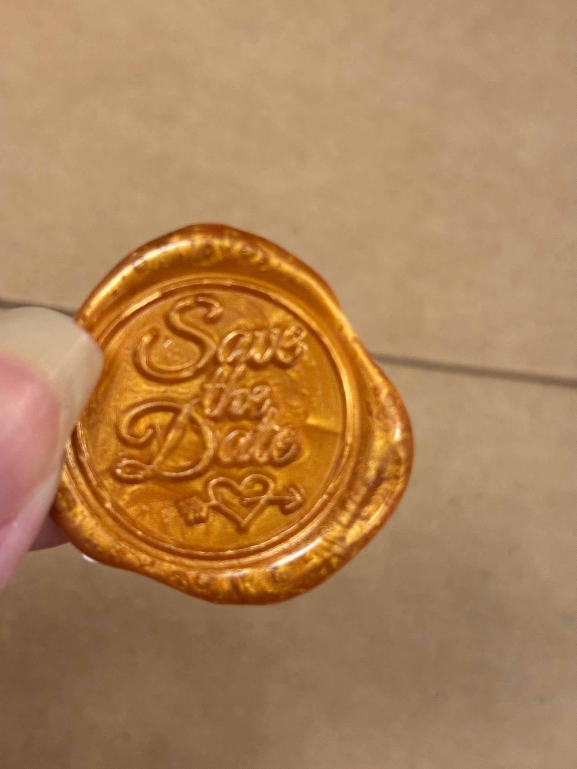 ❤Save the Date Wax Seal, with double sided adhesive on back to stick to envelop or announcement, etc. These are all handmade by myself, there may be imperfections, I personally pour the wax, and stamp them, not any two will be 100% the same.