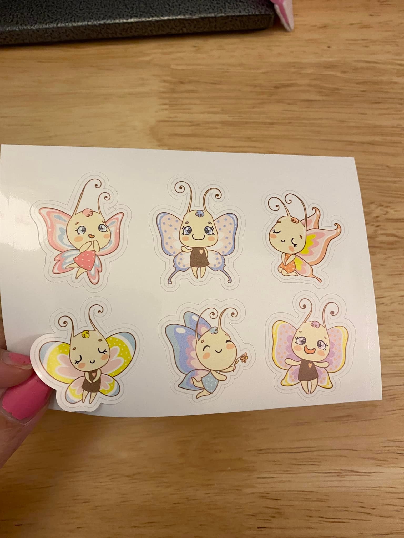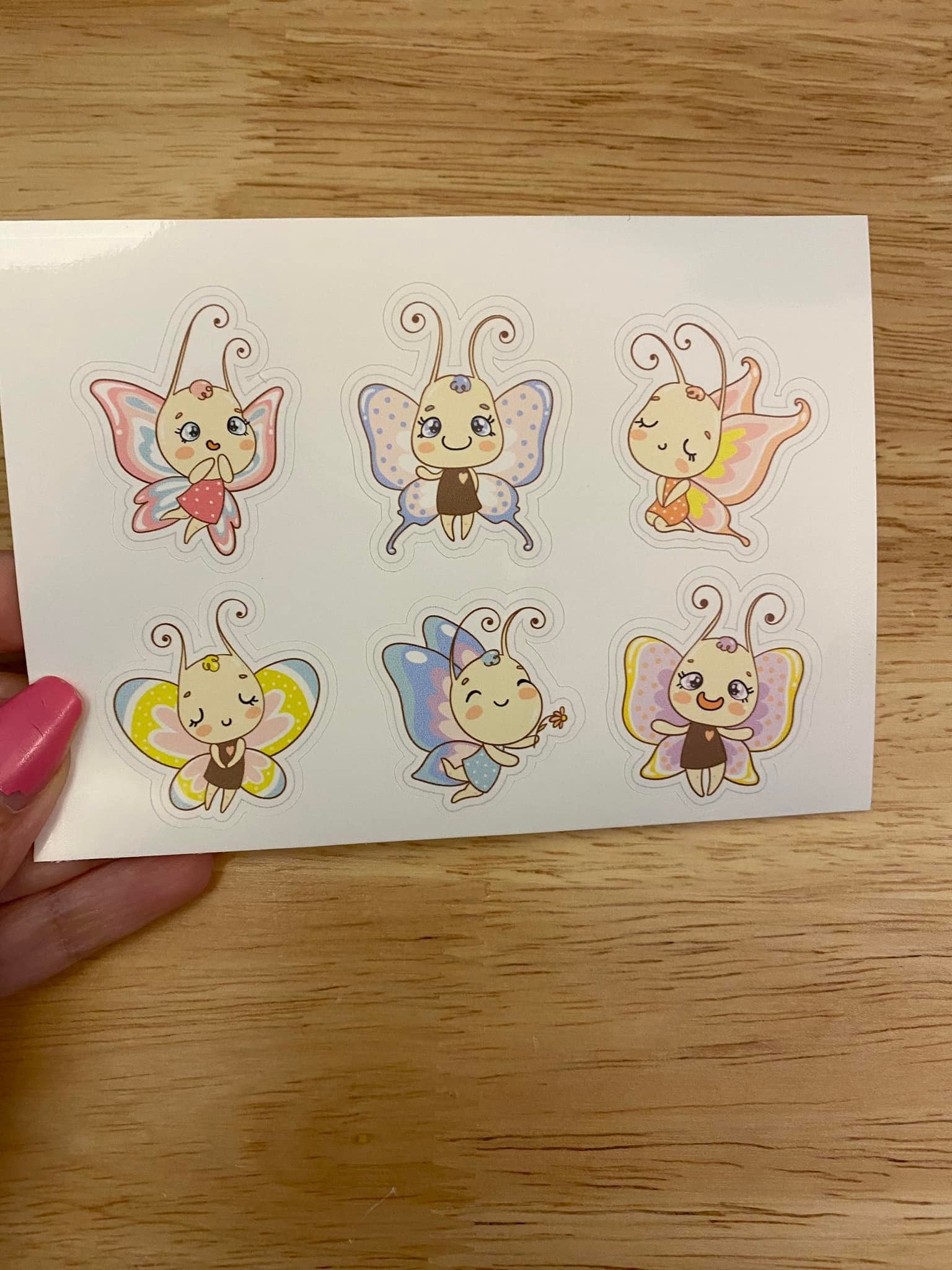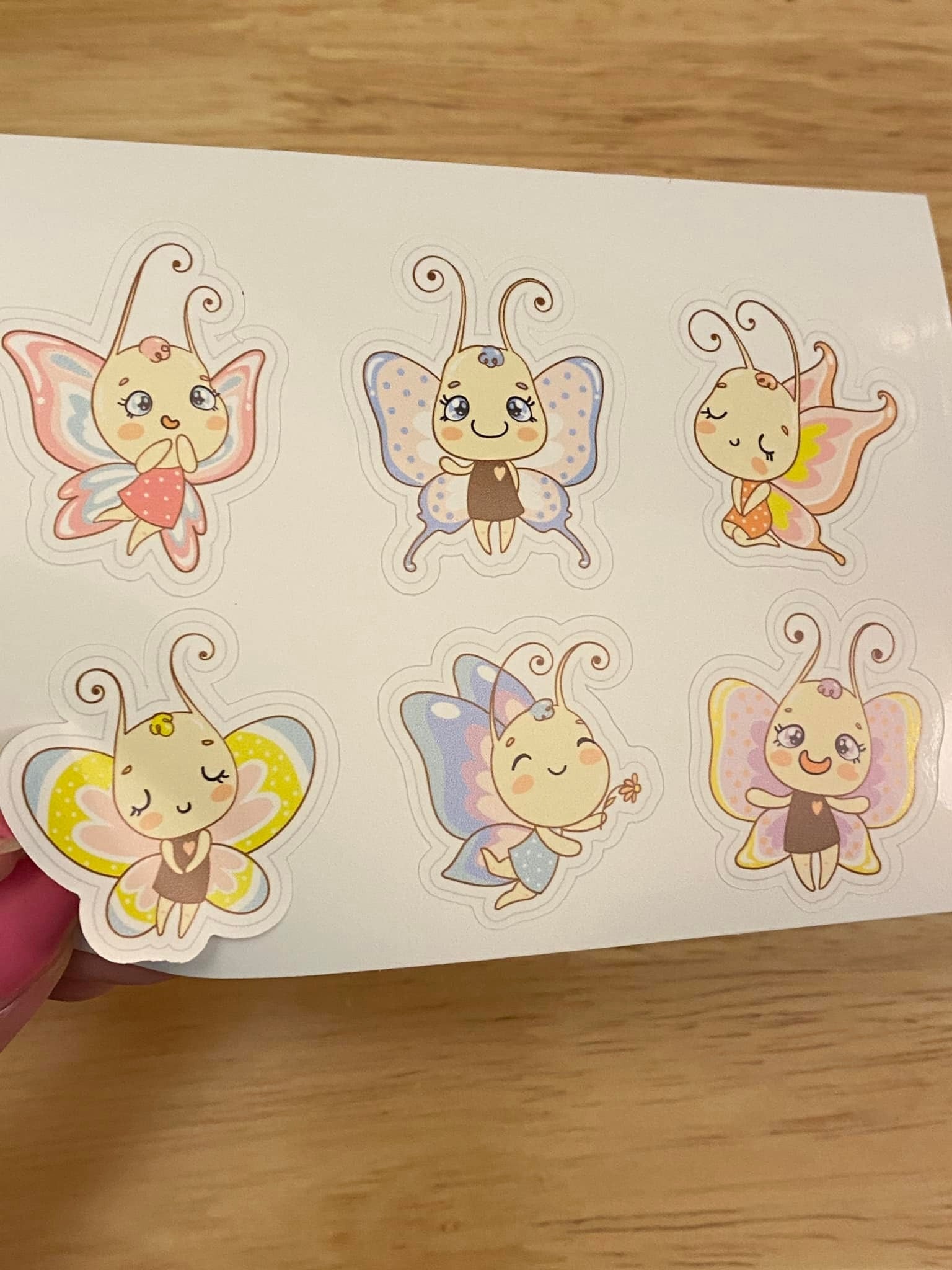 Sheet of Cute Butterflies Stickers, this is printed on very strong White Vinyl type of BOPP Paper and then cut around each sticker leaving a small white outline. Can add to any hard surface, idea for planners.