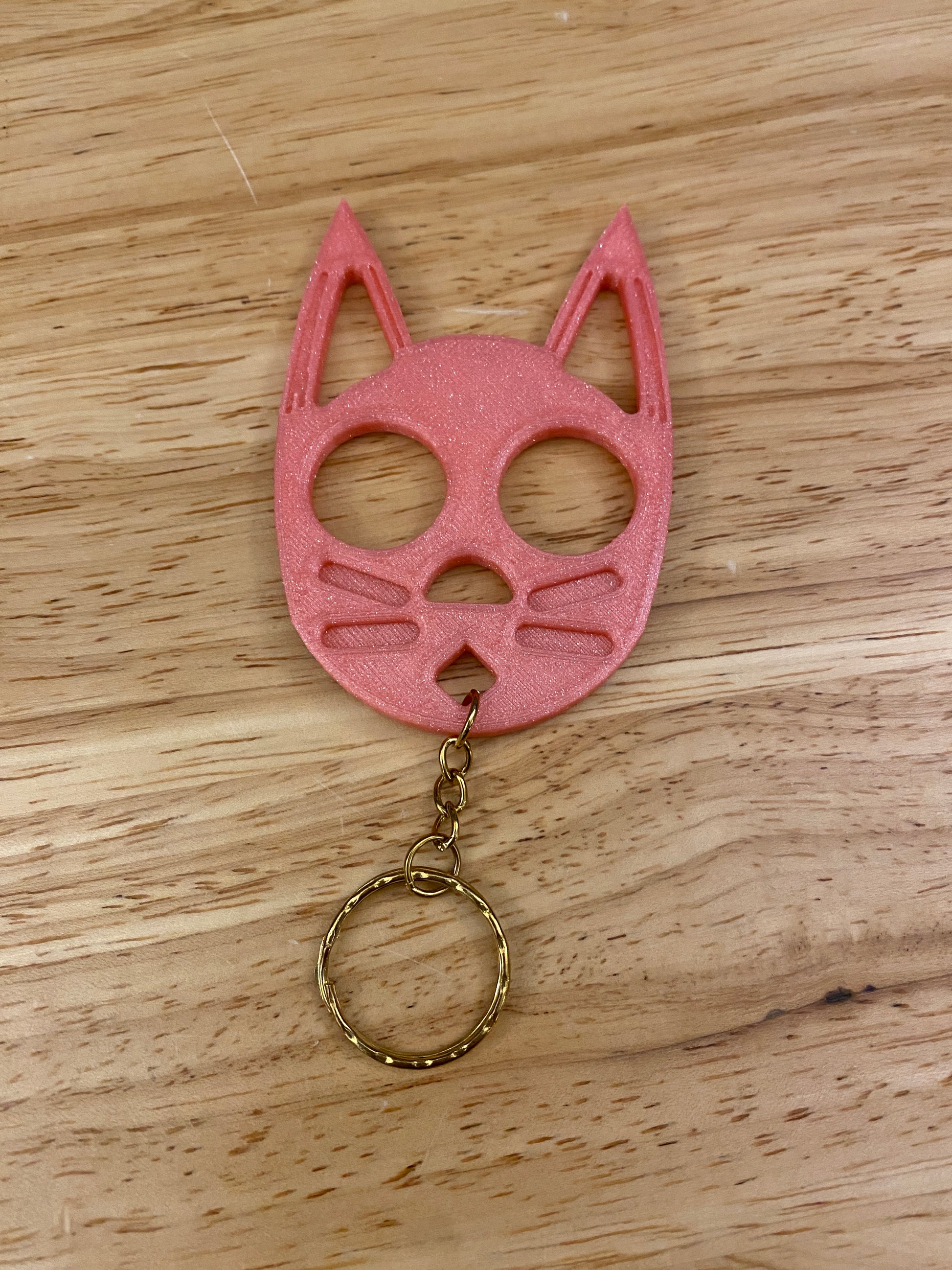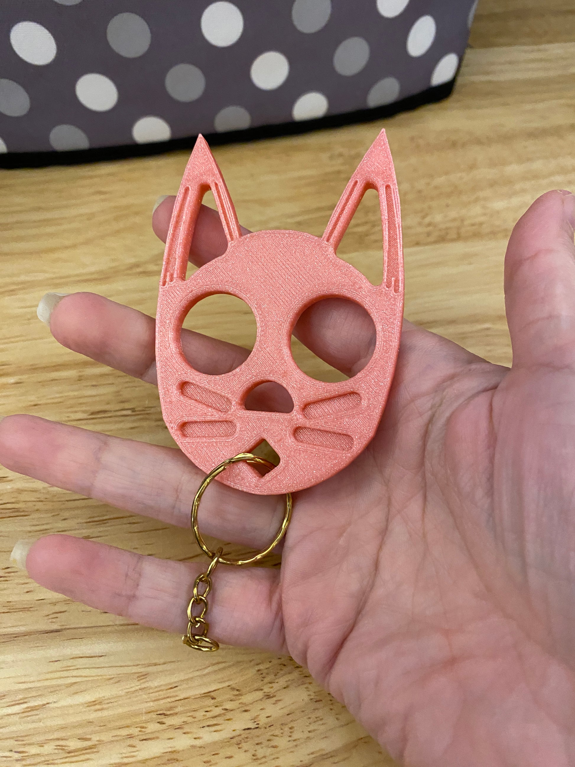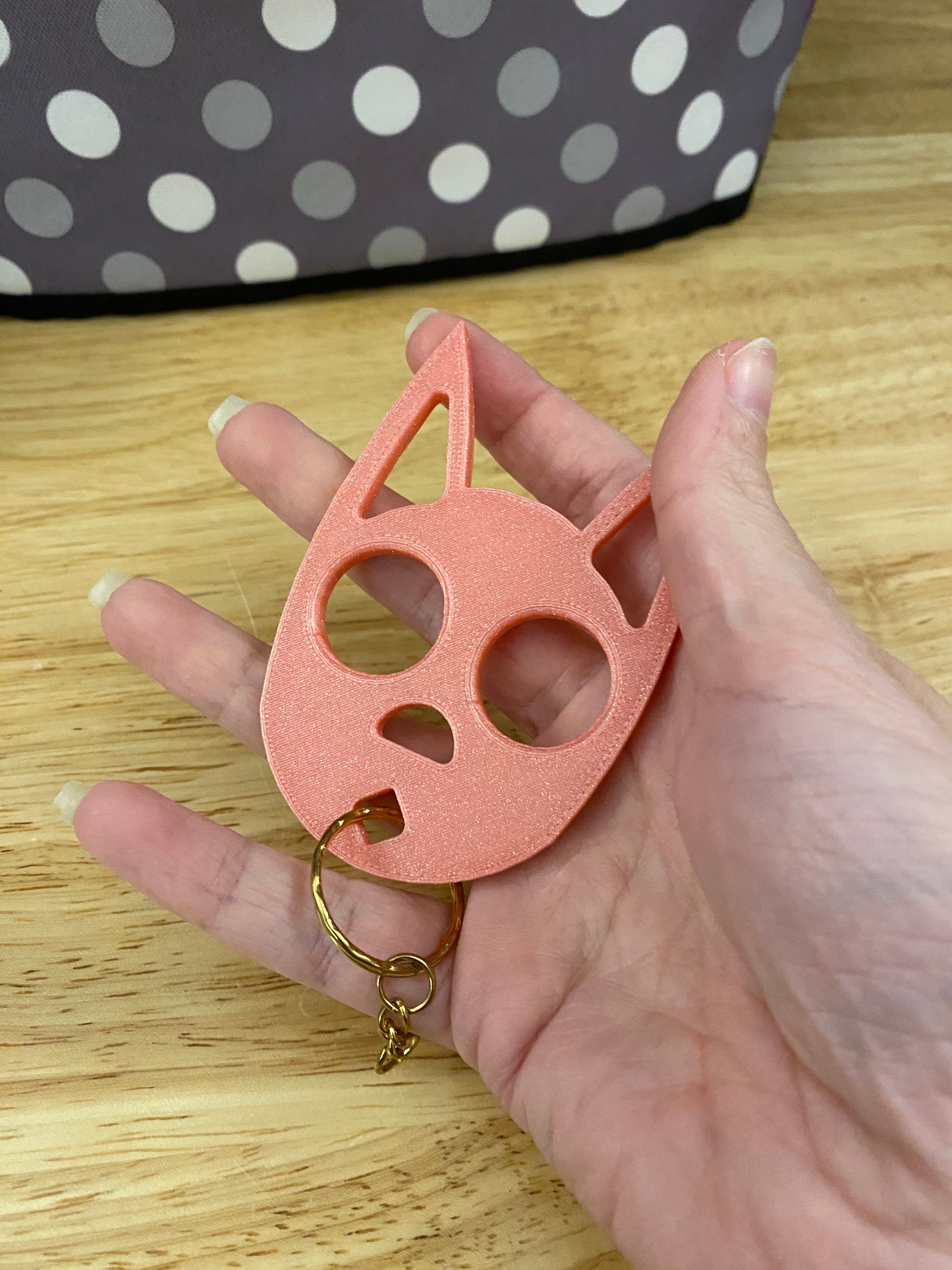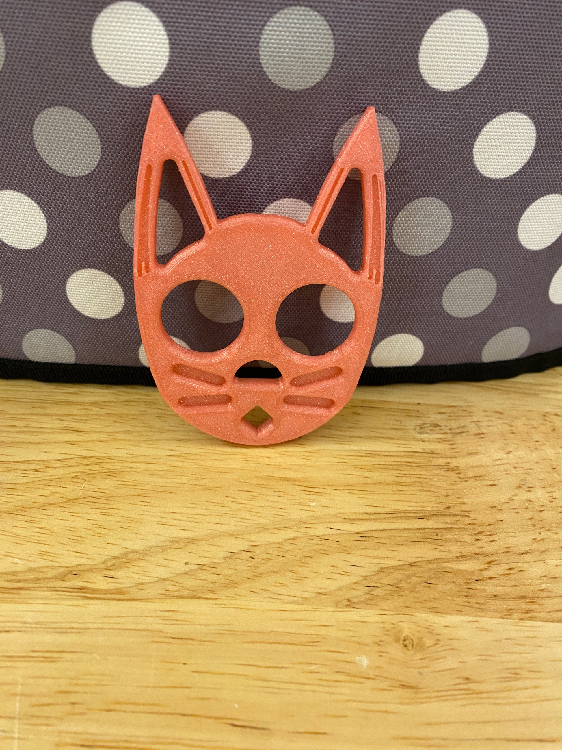 Cat Self Defense keychain, this is 3D printed cat head with very sharp pointed ears, this is not a toy.