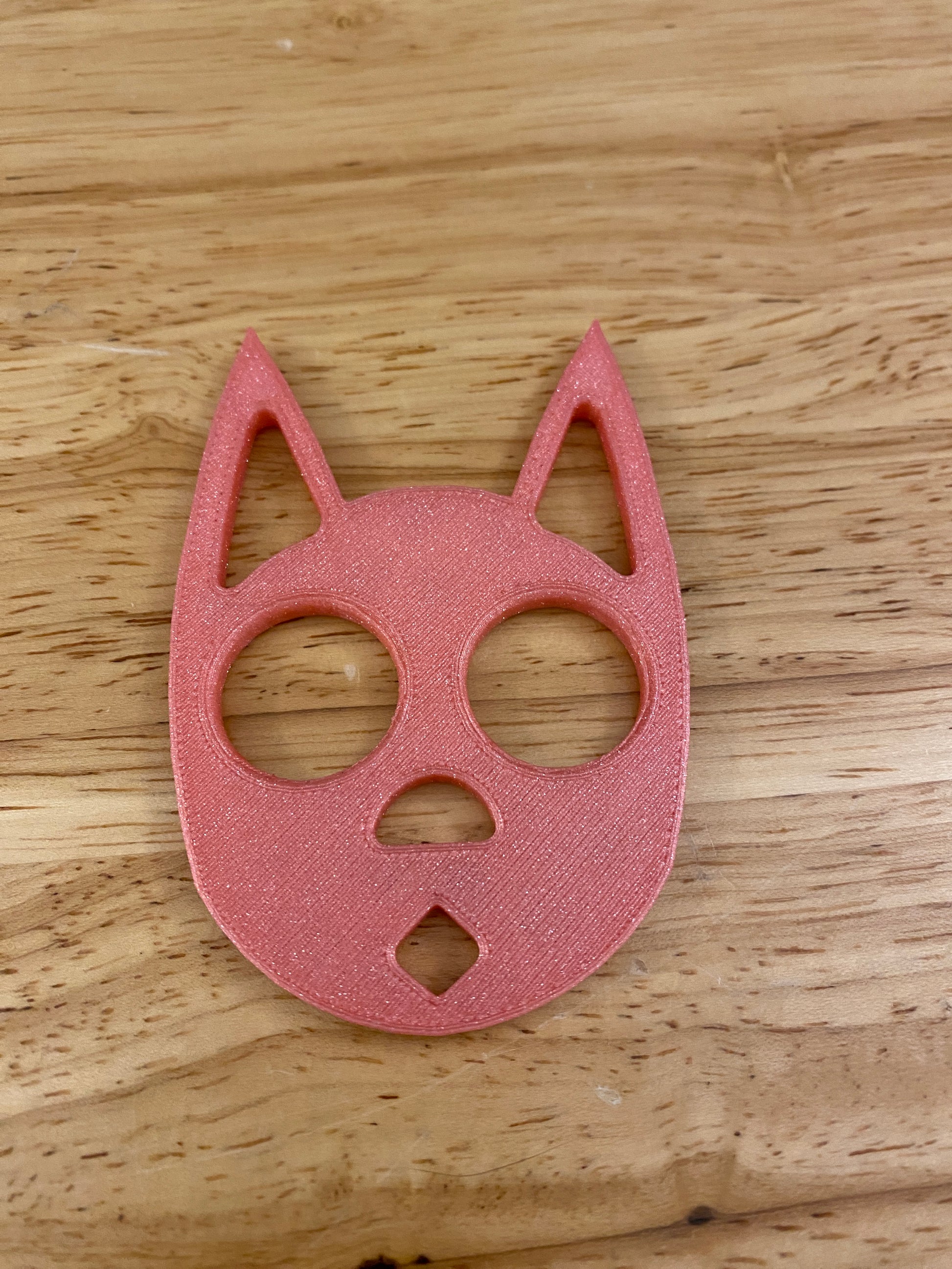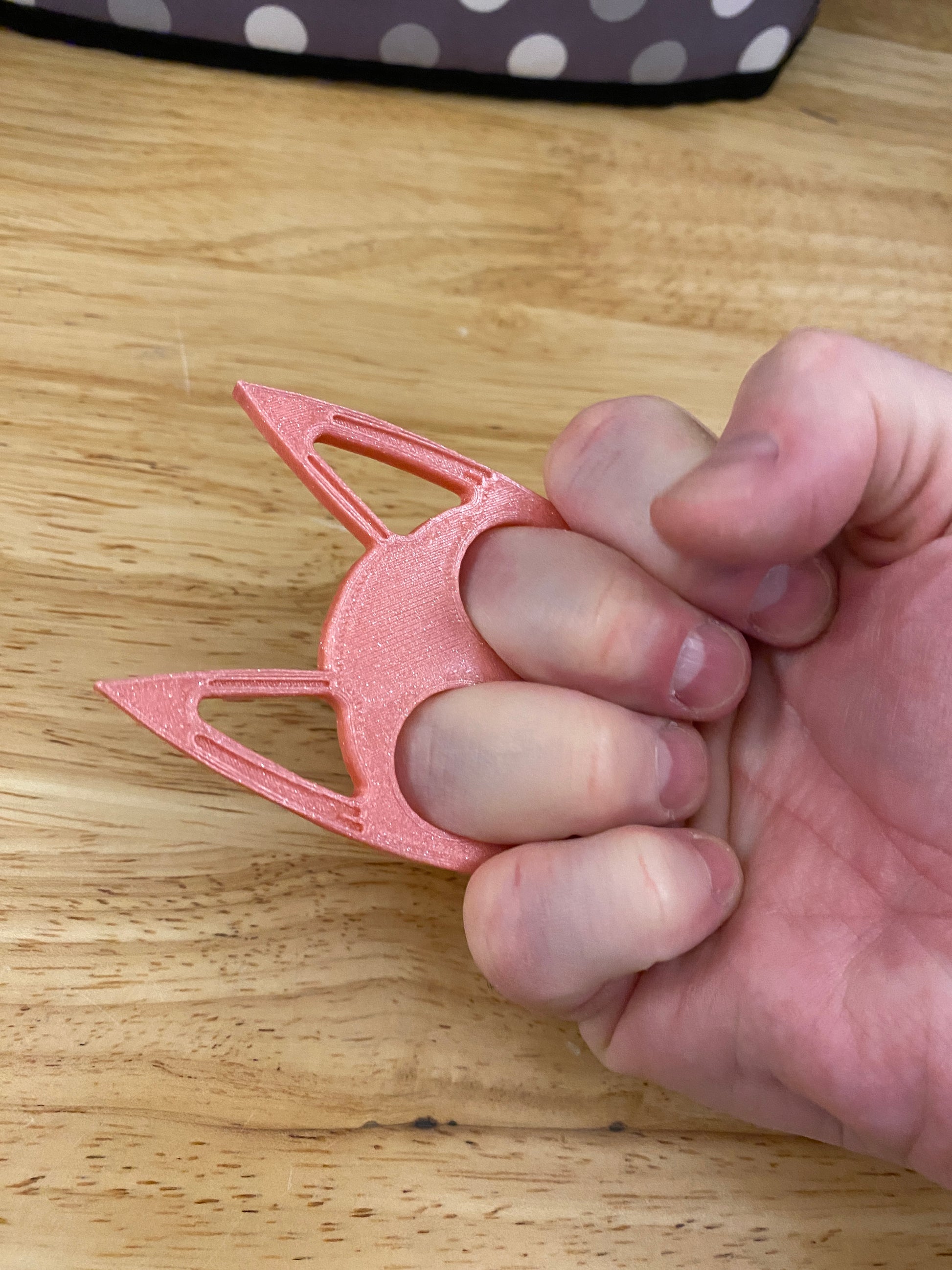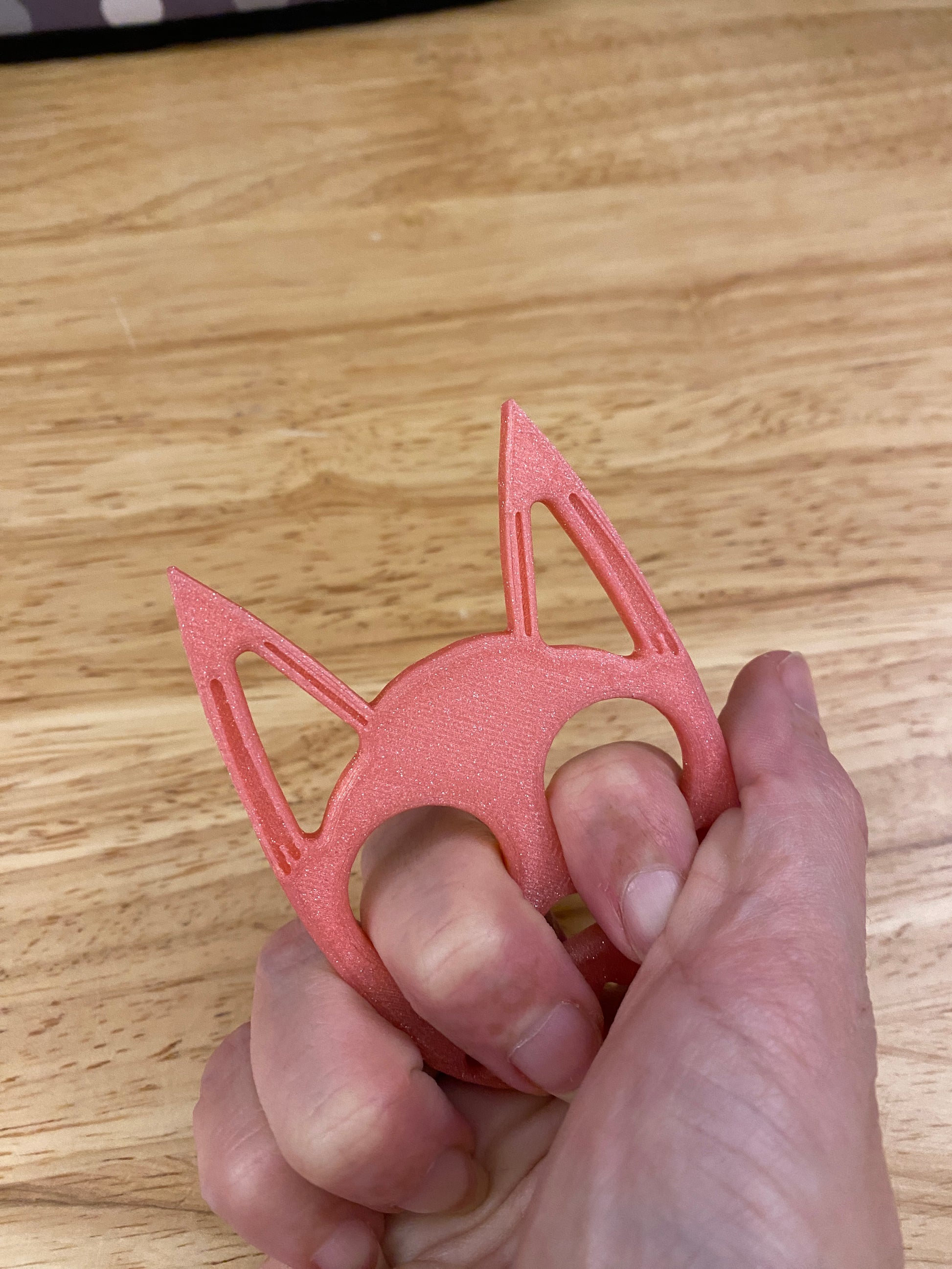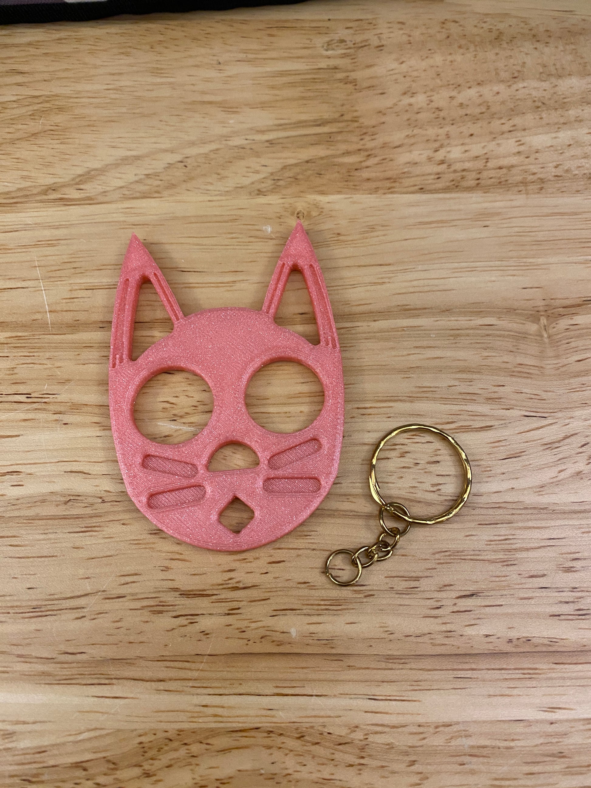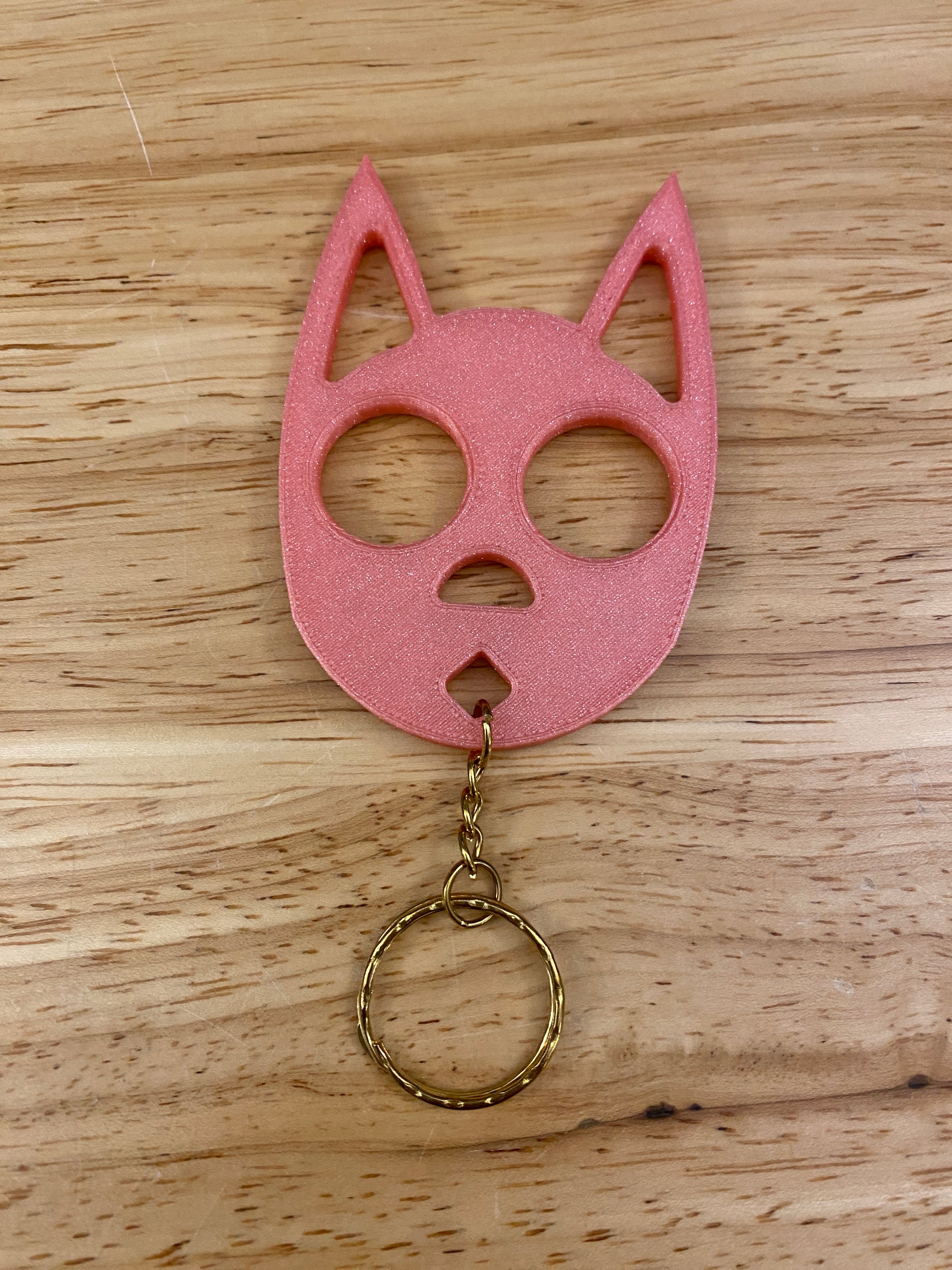 Cat Self Defense keychain, this is 3D printed cat head with very sharp pointed ears, this is not a toy.