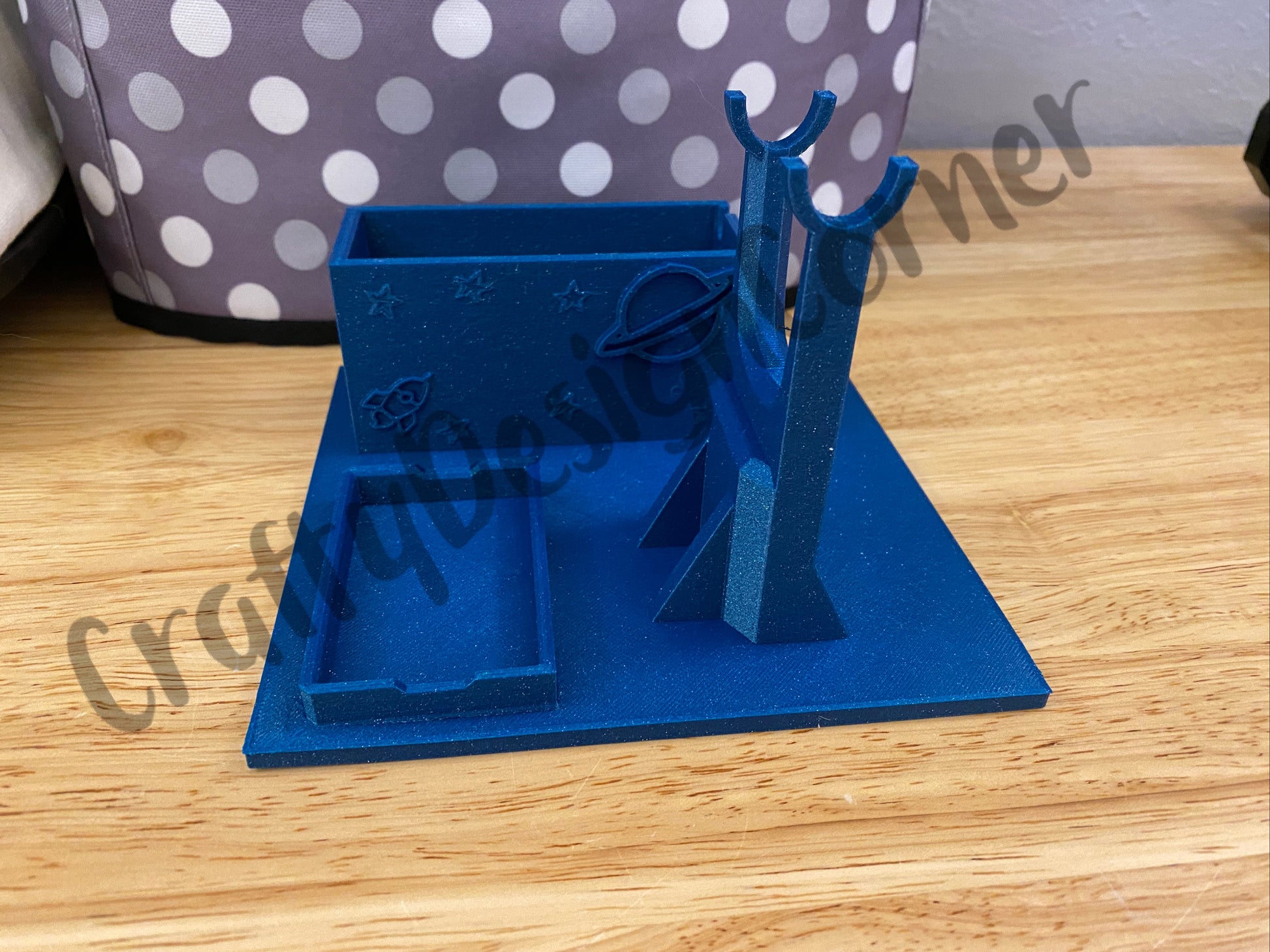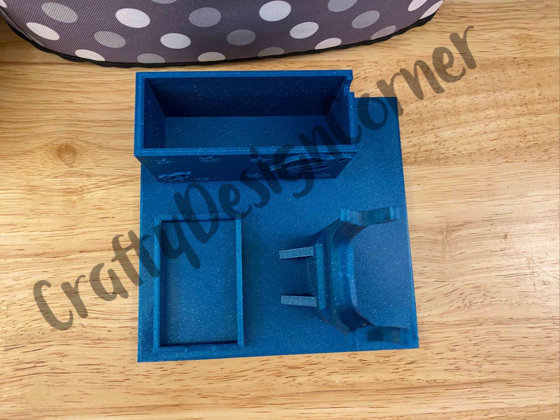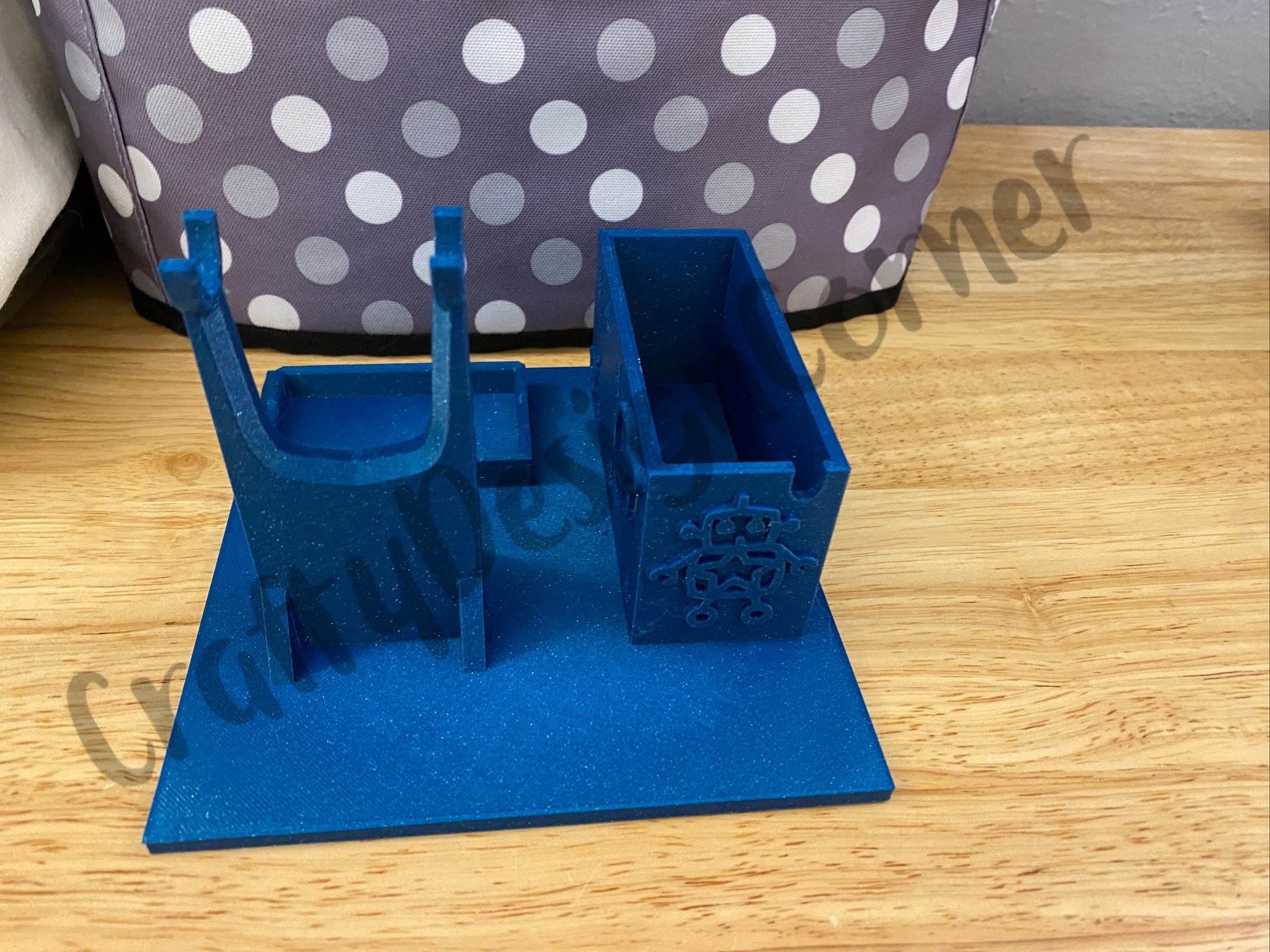 Hot Glue Gun Holder this is a 3D Printed Caddy Stand Holder. This will hold some hot glue sticks as shown or its cord, and allows the hot glue gun to sit on it, this is meant for a hot glue gun.